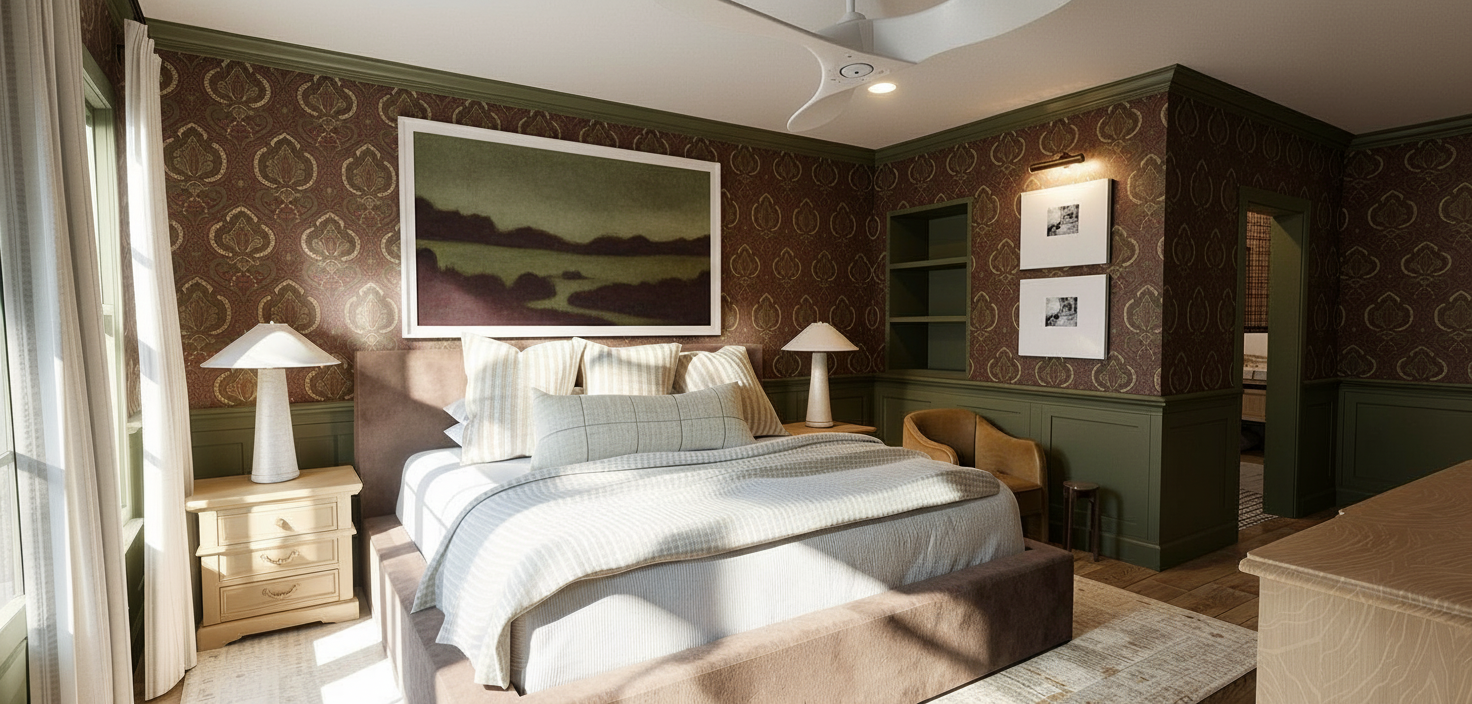 change artwork above bed to an abstract muted art