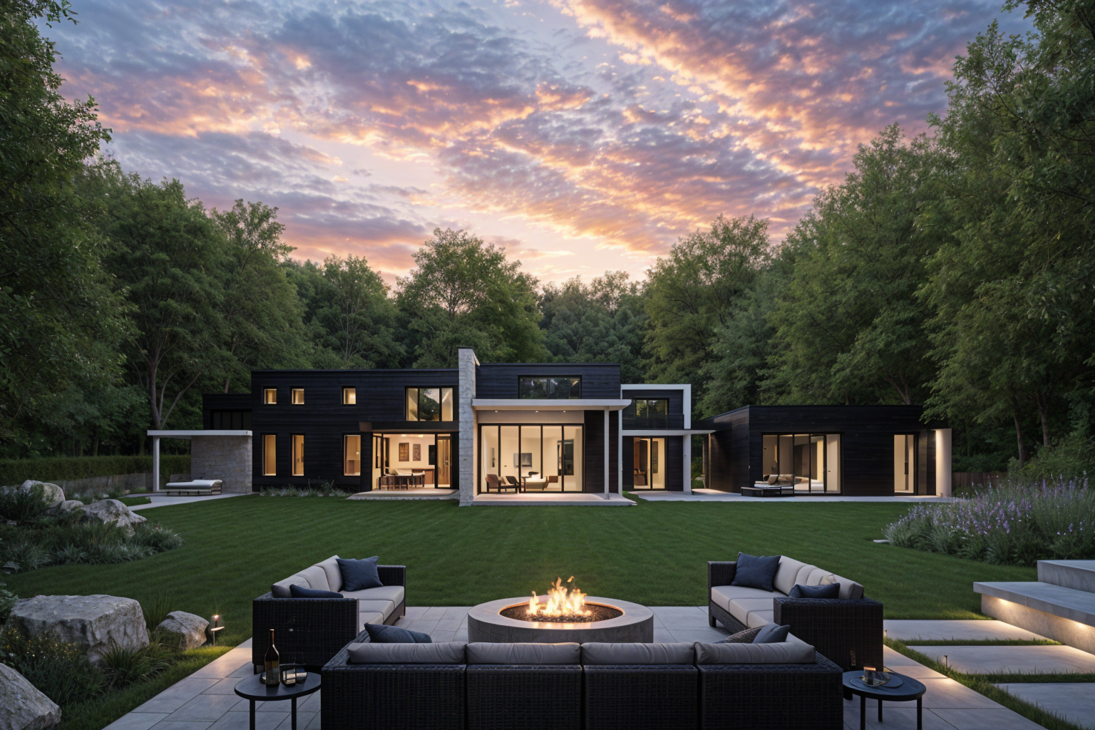 interior high end basement party using golf simulator