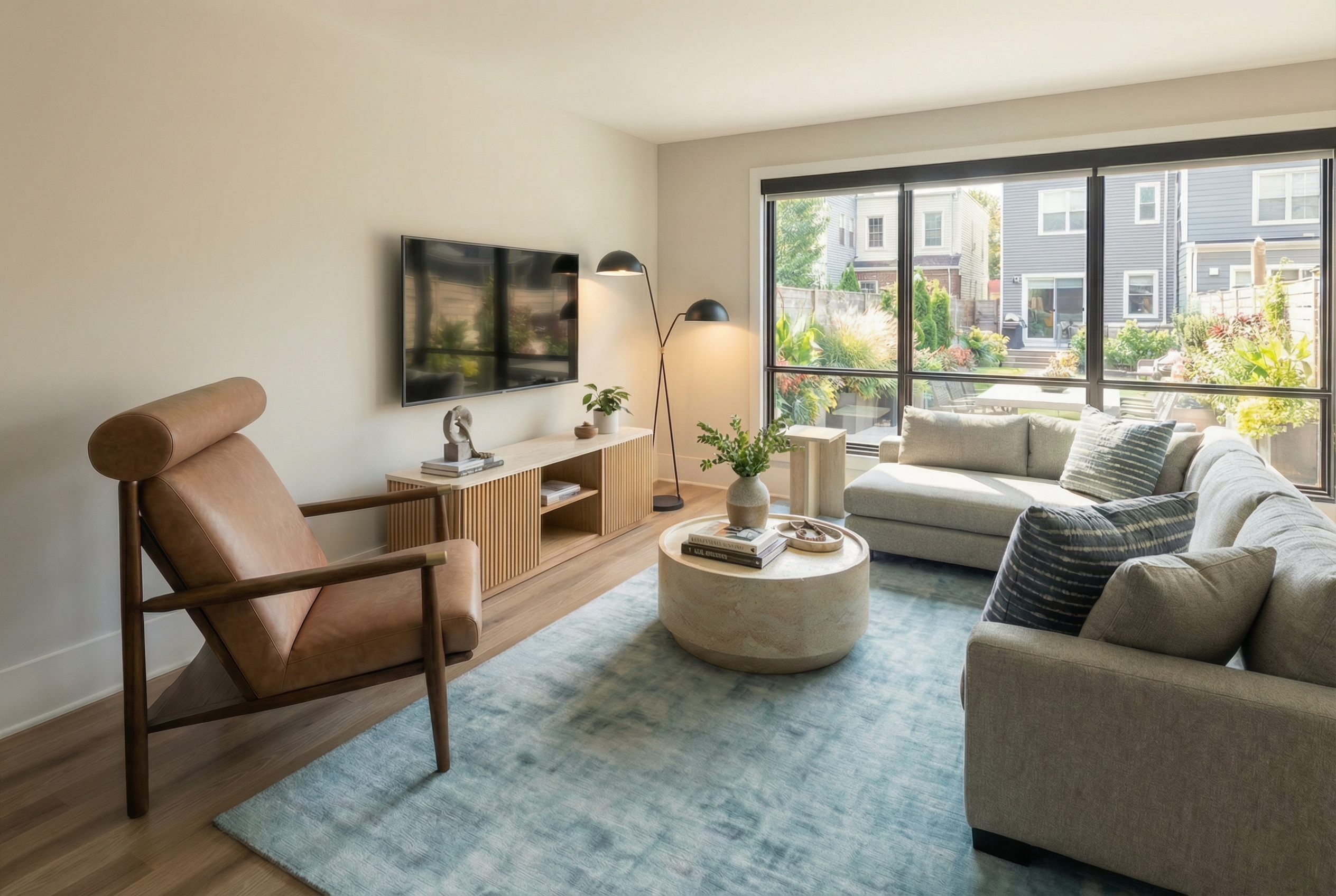 render in perspective with rift white oak light stained cabinets with shaker doors