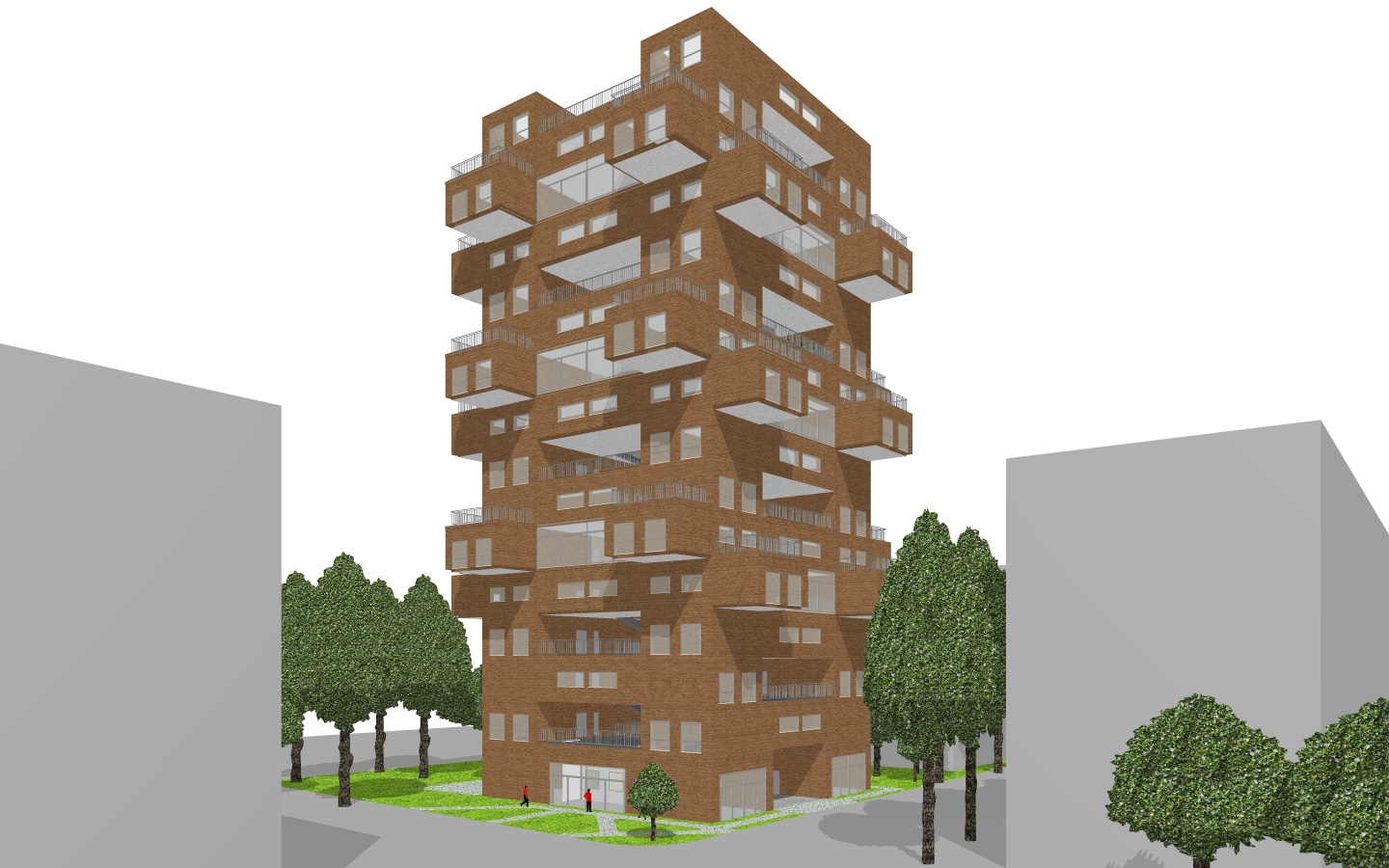 strictly preserve exact original architecture structure geometry proportions layout perspective all protrusions cutouts balconies volumes no design changes shapes or angles detail faithful overhangs and recesses continuous vertical wood lattice facade warm planks natural grain everywhere including white areas under overhanging parts make them matching wood surrounding simple buildings trees grass blue sky daylight high res photorealistic exterior architectural viz use input as strict blueprint improve only materials lighting details