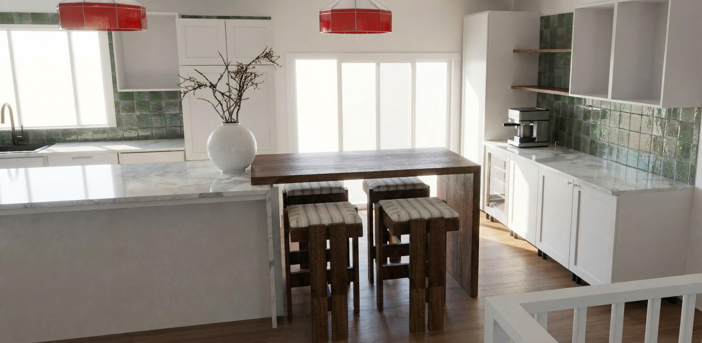 keep cabinets in shoji white color by sherwin williams