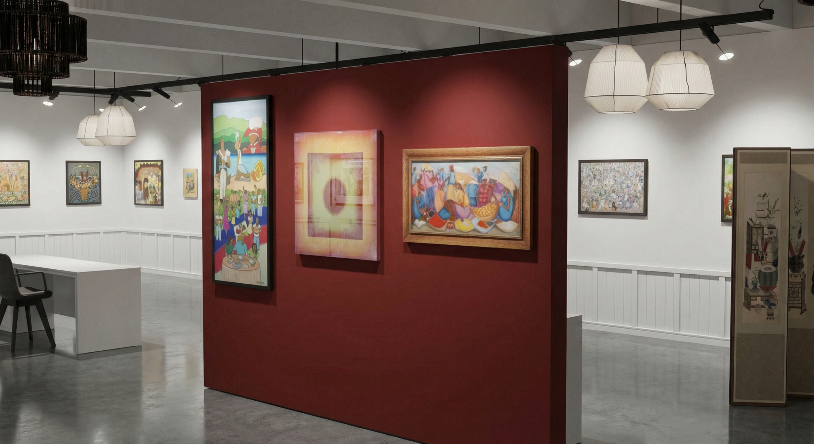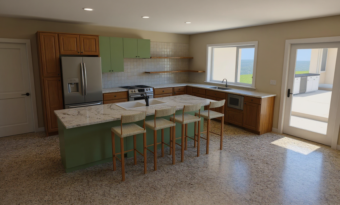 maintain proportion bigger part terminal 1 piece brushed copper surface smaller part round oak sticks surface terazzo countertops wall on right painted caparol casa terracotta natural structure wall left round profiles varnished pfleiderer lava