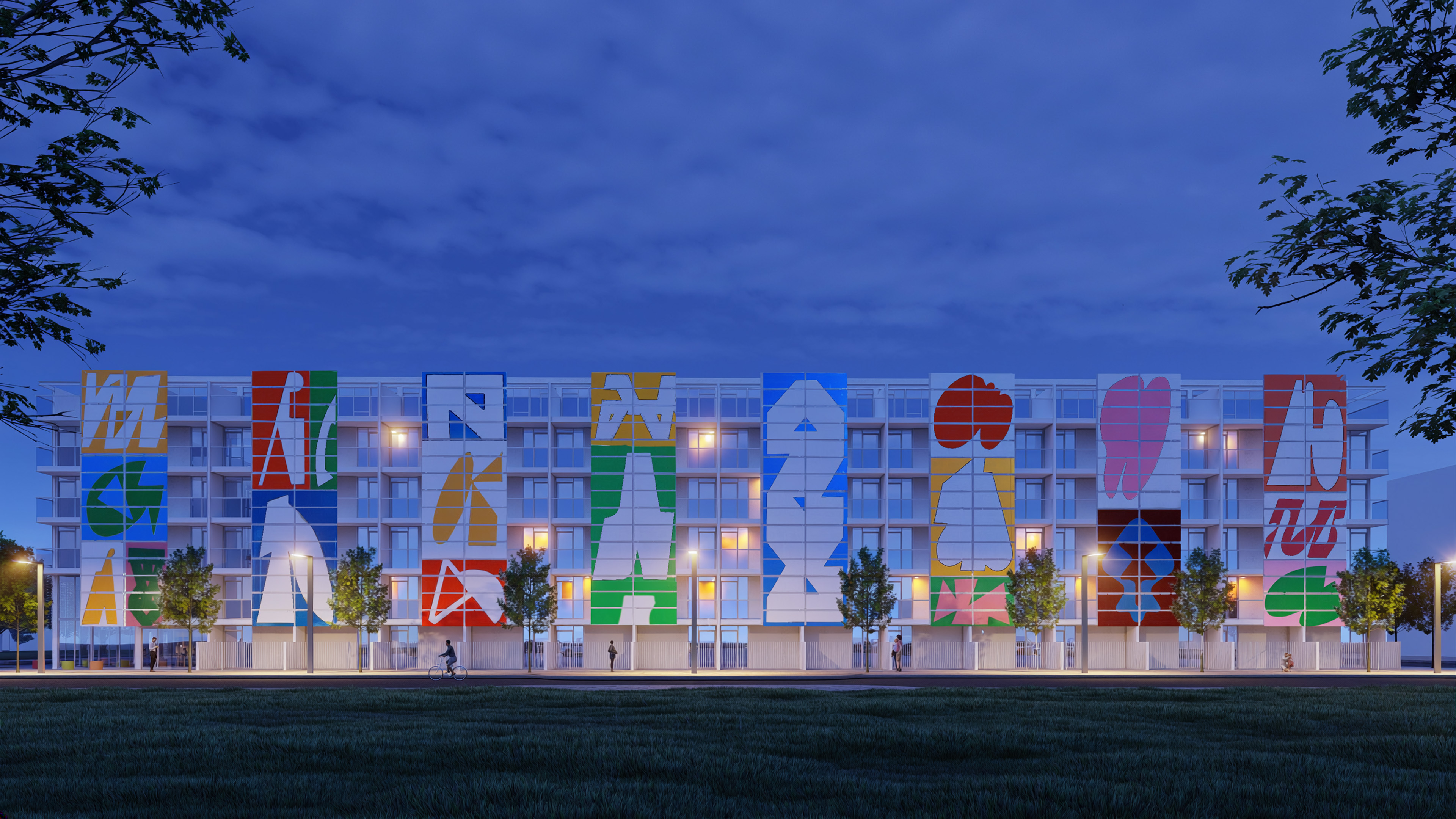 make the night sky a bit more dynamic add one or two silhouettes on a balcony food truck on street in front