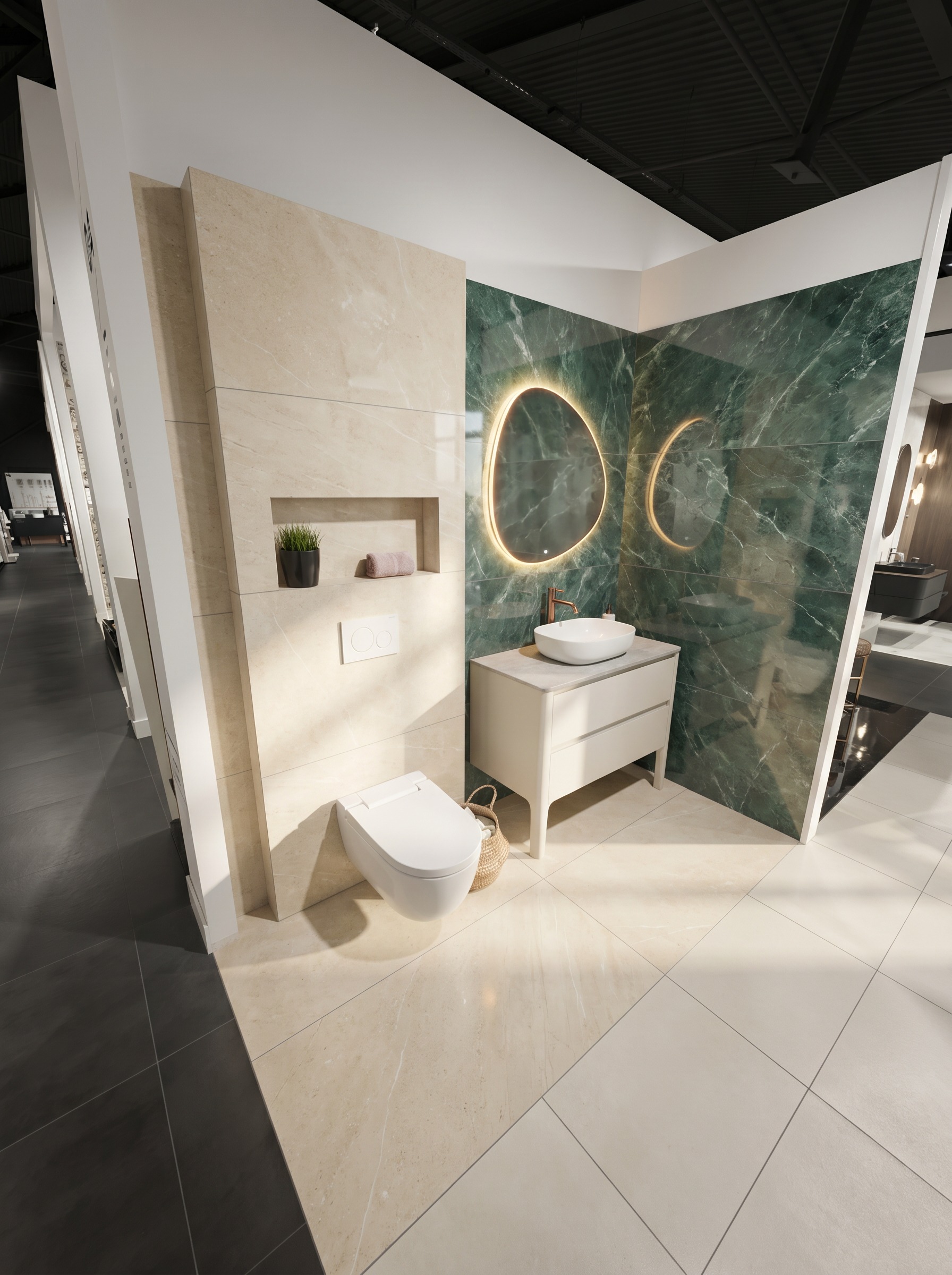 eep the entire bathroom exactly as in the original image preserving all materials lighting fixtures and camera angle remove the recessed niche in the built in structure around the geberit the wall should become flat and continuous with no indentation cut out or cavity rebuild the surface so it is smooth even and flush with the surrounding cabinetry or wall finish maintain consistent material and design so the area looks seamless and intentional ensure realistic construction correct proportions and clean architectural detailing do not change any other elements in the scene ultra realistic architectural visualization high detail physically accurate materials natural lighting no artifacts