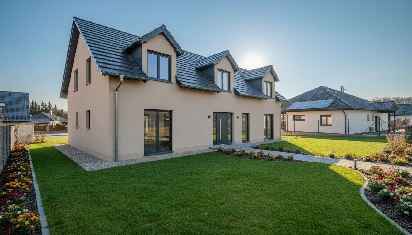 add landscaping and make photorealistic add patio on the left side