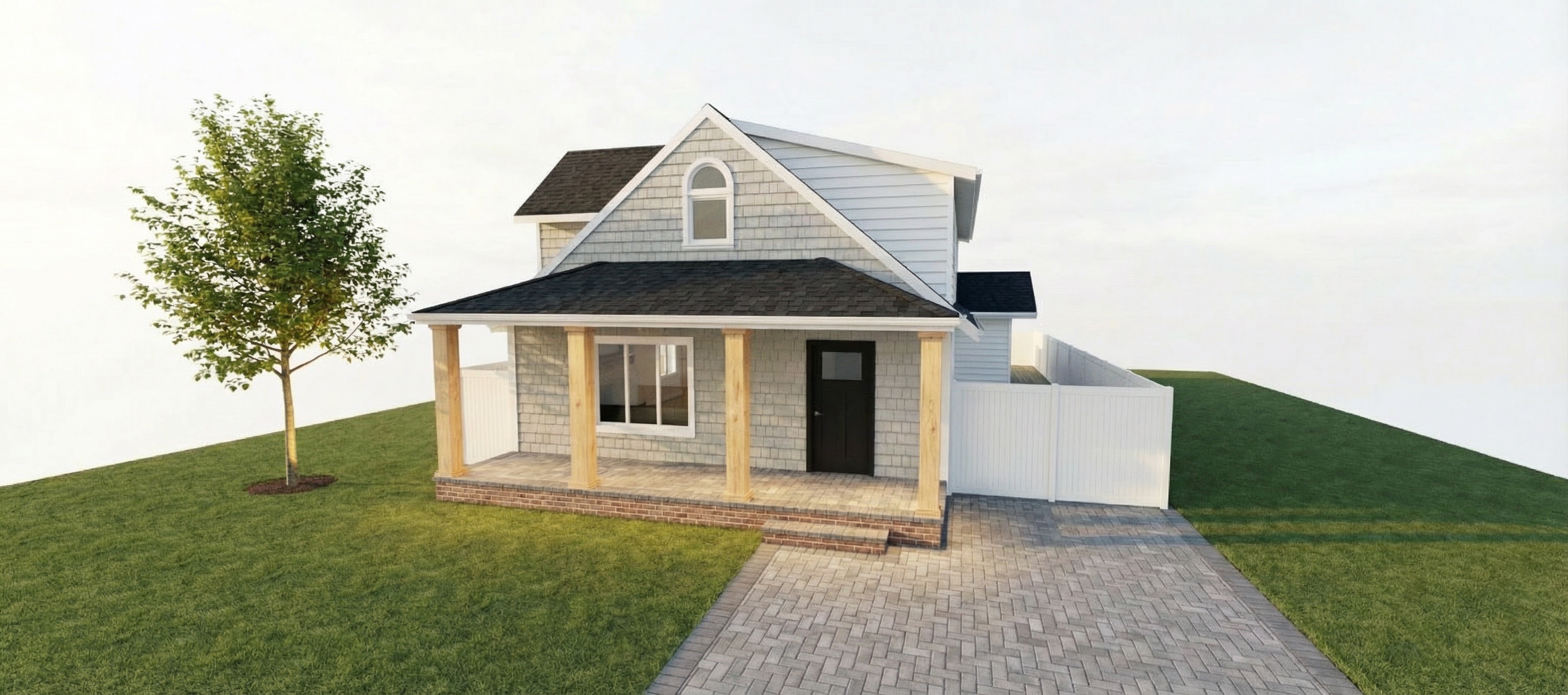 remove the tree change the red brick to grey