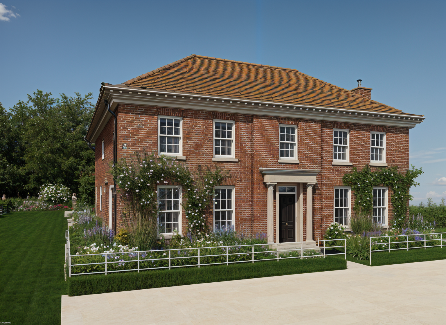 create a hyper realistic visual of this house design add planting to the front make the driveway a cream resin bound finish and add trees and planting in the background it needs to look classy and i like some planting on the house