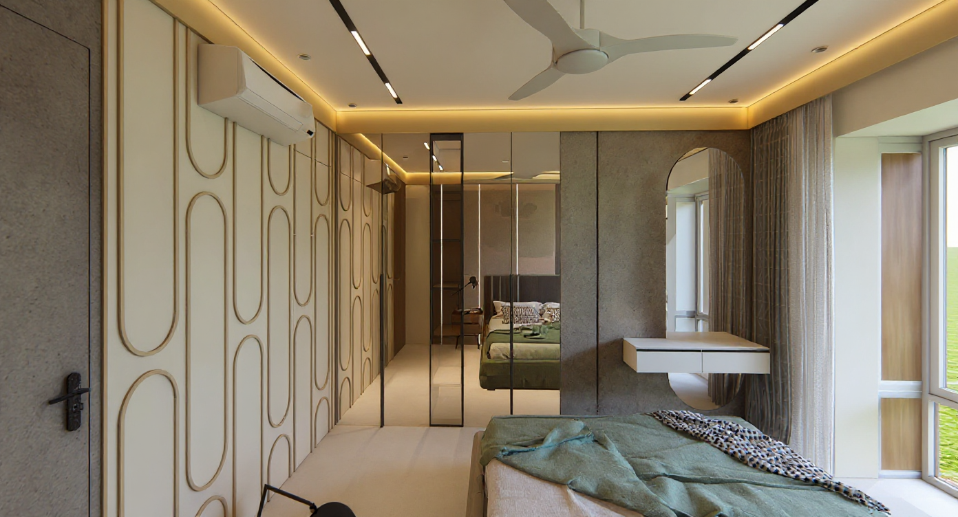 keep the base image completely unchanged in terms of composition furniture placement lighting direction furniture tones to be greyish add warm lighting in room datlight