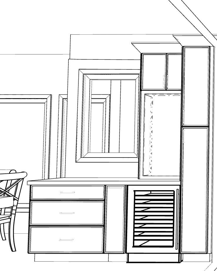 make base cabinets teal and wall cabinets off white make floors terracotta square tile make backsplash an earthy green herringbone tile make wall cabinet that sits on countertop a wine rack and make the countertop taj mahal