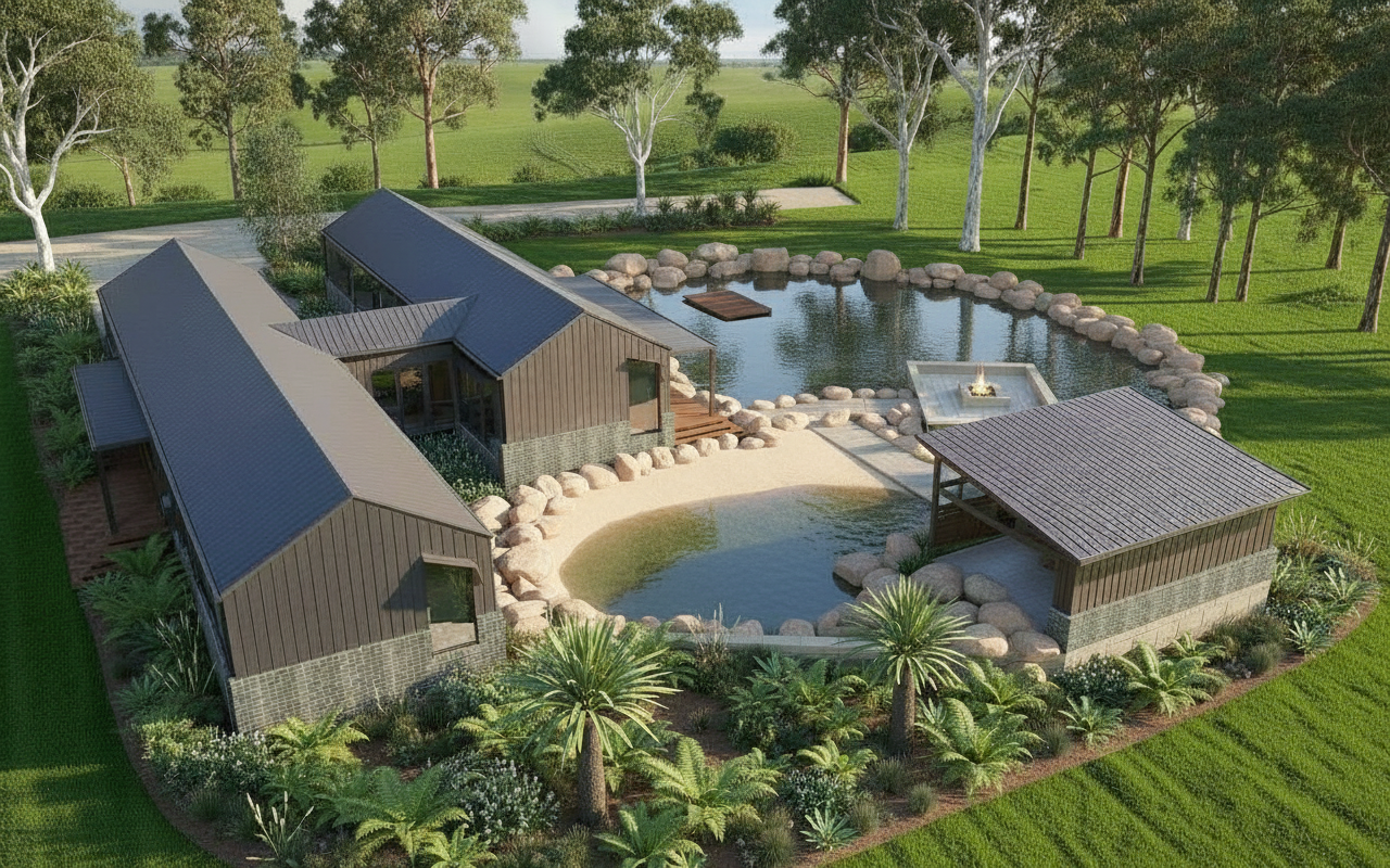 please create a realistic 3d corner perspective view of a single family home based solely on the photo provided please maintain the exact proportions of the structure and the geometry of the roof low pitched gable roof with dark finishes exterior walls finished with siding please include large floor to ceiling sliding glass doors with triangular clerestory glazing matching the roof pitch on the adjacent side facade please include smaller vertical rectangular windows matching the position on the facade camera at eye level focal length 35 45 mm natural daylight soft shadows neutral smooth background semi realistic architectural visualization style clean and minimalist scene no surrounding elements