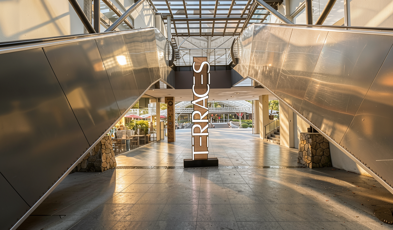 can you make the signage look real perforated mesh bronze metallic and the letters textured smooth white dont make it glow