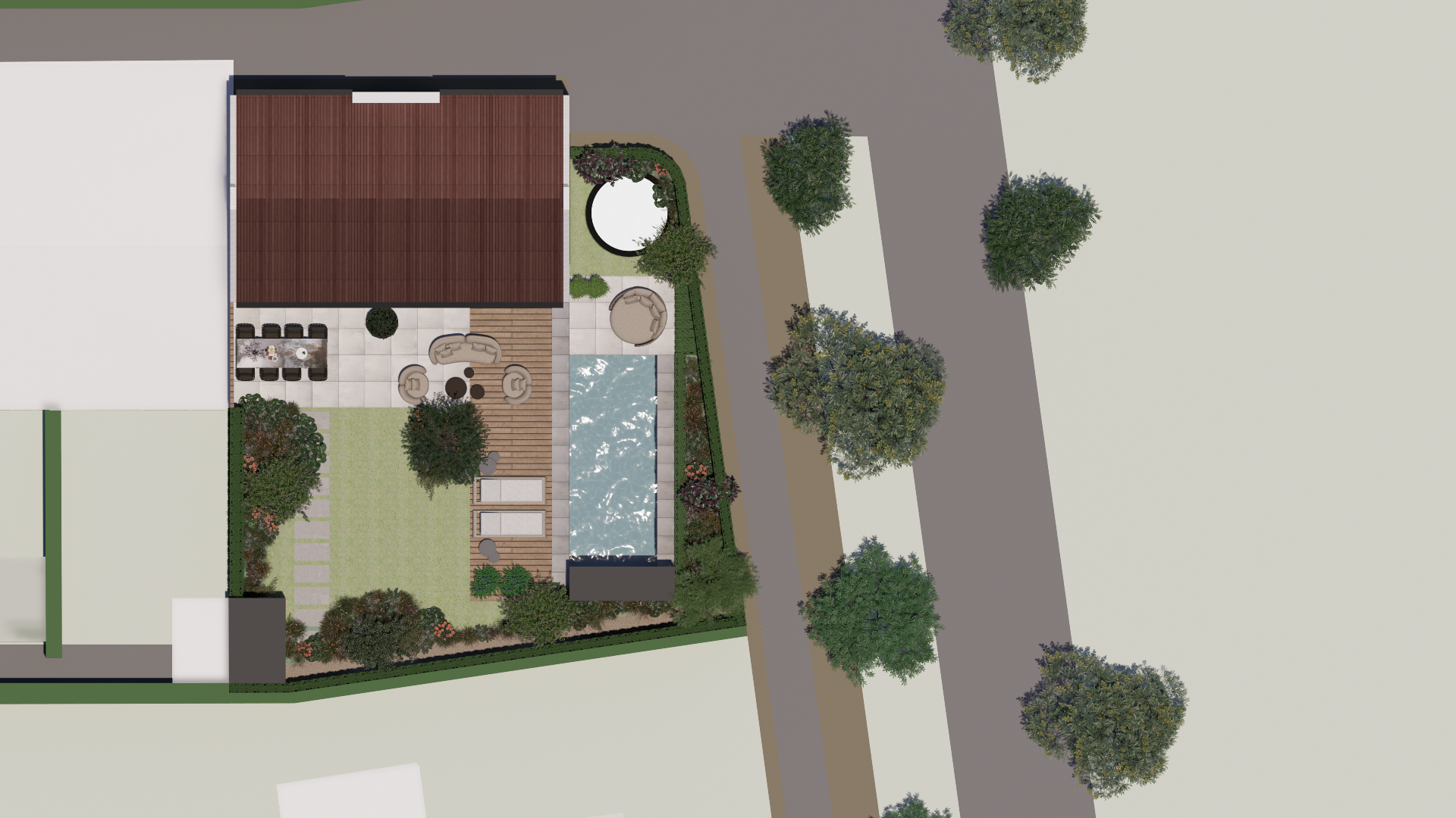 circle above the pool is a trampoline