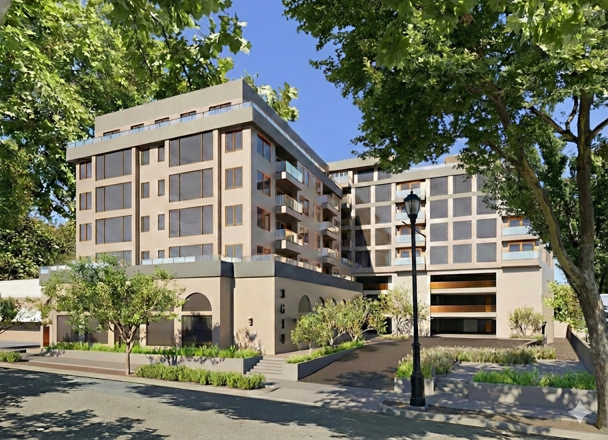exterior shot exterior shot blend two architectural images use the first for its formal qualities overall massing spatial organization and the second for its facade expression materials and detailing the result should represent a 7 story 88 6 height multiple family building and retail business mixed use project located at 3614 mount diablo lafayette ca retail business use 7 007 square feet of retail area plus open parking landscaping and site improvements parking will be at grade level plus two levels podium parking the two levels podium can be seen across both front block and back block of apartments it will define the entrance using warm beige limestone texture all across both blocks to define hierarchy there will be roof top rosemary garden all across a gray smooth concrete band that will go across the front block of apartments bronze tinted glass and antique bronze window frames emphasize a strong connection to the landscape maximizing views and integration with the street view the final design should feel both grounded and exclusive balancing modernity with contextual sensitivity