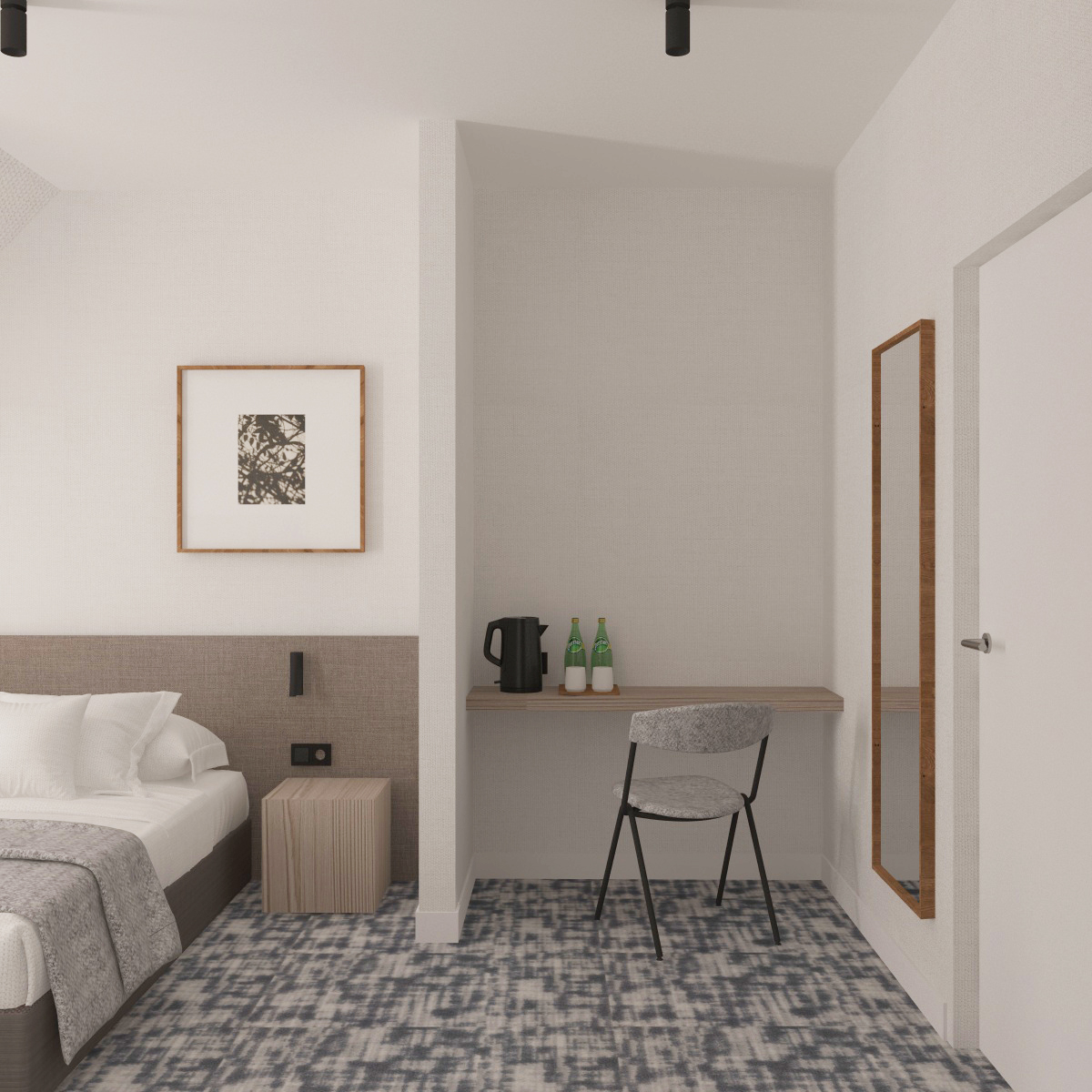 make this render better more accurate materials and soft artificial lighting from the ceiling