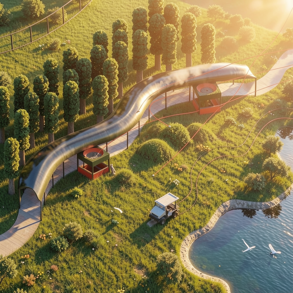 create a realistic cozy rural house scene featuring a cream exterior with crisp white trim the front door and windows is black adding an inviting touch and a subtle grid pattern at the windows the roof is a gentle black shingle contrasting harmoniously with the rest of the facade surround the house with a tranquil lush green lawn under a crisp clear blue sky casting soft natural shadows to enhance the serene atmosphere add trees in the background add sidewalk to concrete stoop