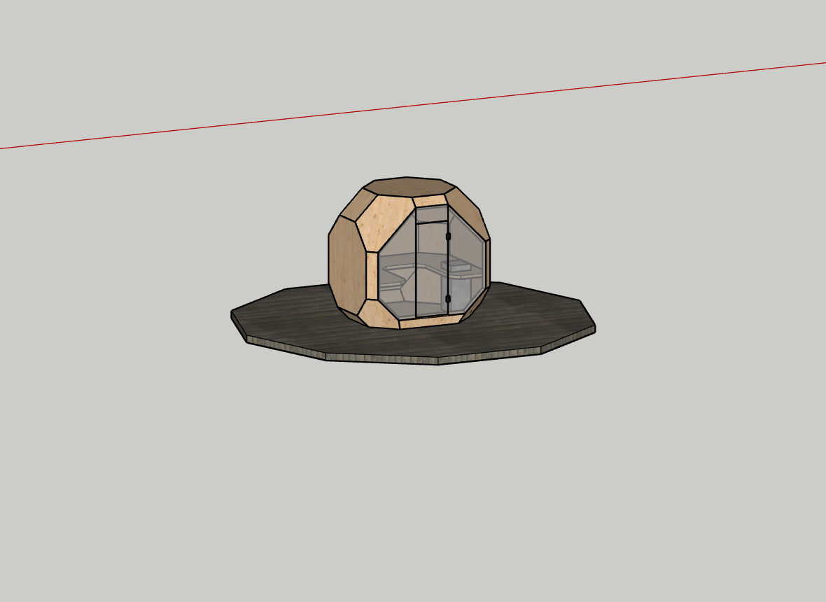 render a photorealistic 3d perspective of this sauna the current material style keep model geometry the same windows doors roof walls make a green meadow do not change relief do not change the view only enhance the current materials and make the landscape nicer vegetation detailed textures in the wood siding and glass reflections and a vibrant clear sky with light atmospheric depth render in hyper realistic architectural visualization quality 8k resolution