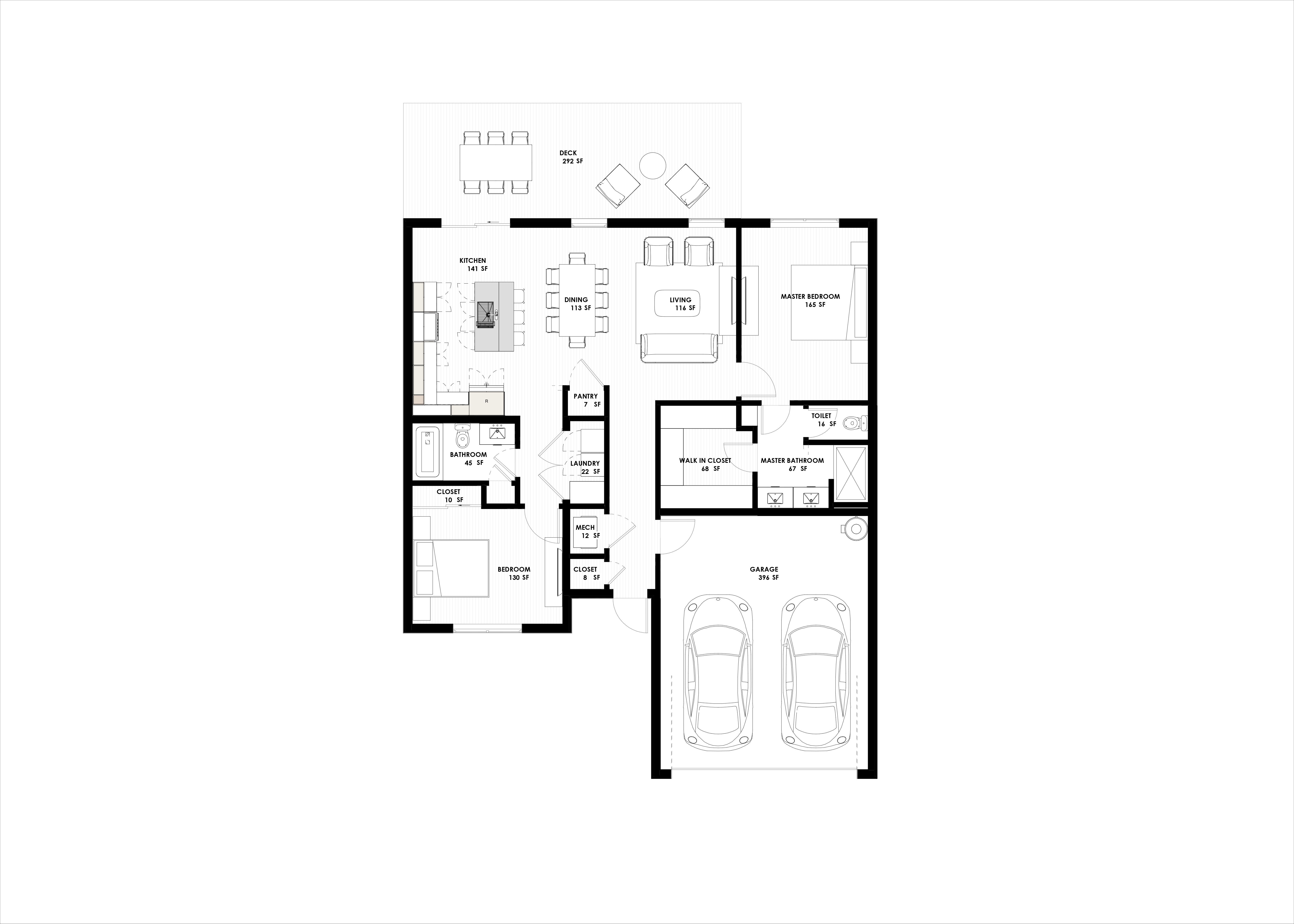 convert this floor plan into a realistic isometric 3d view of a full house show the space from an elevated angle with furniture walls and details visible use the same furniture as shows on the plan do not change the orientation of the floorplan
