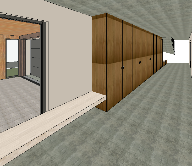 brown oak cabinets with recessed handles vertical on every other one tiles on floor beige color ceiling