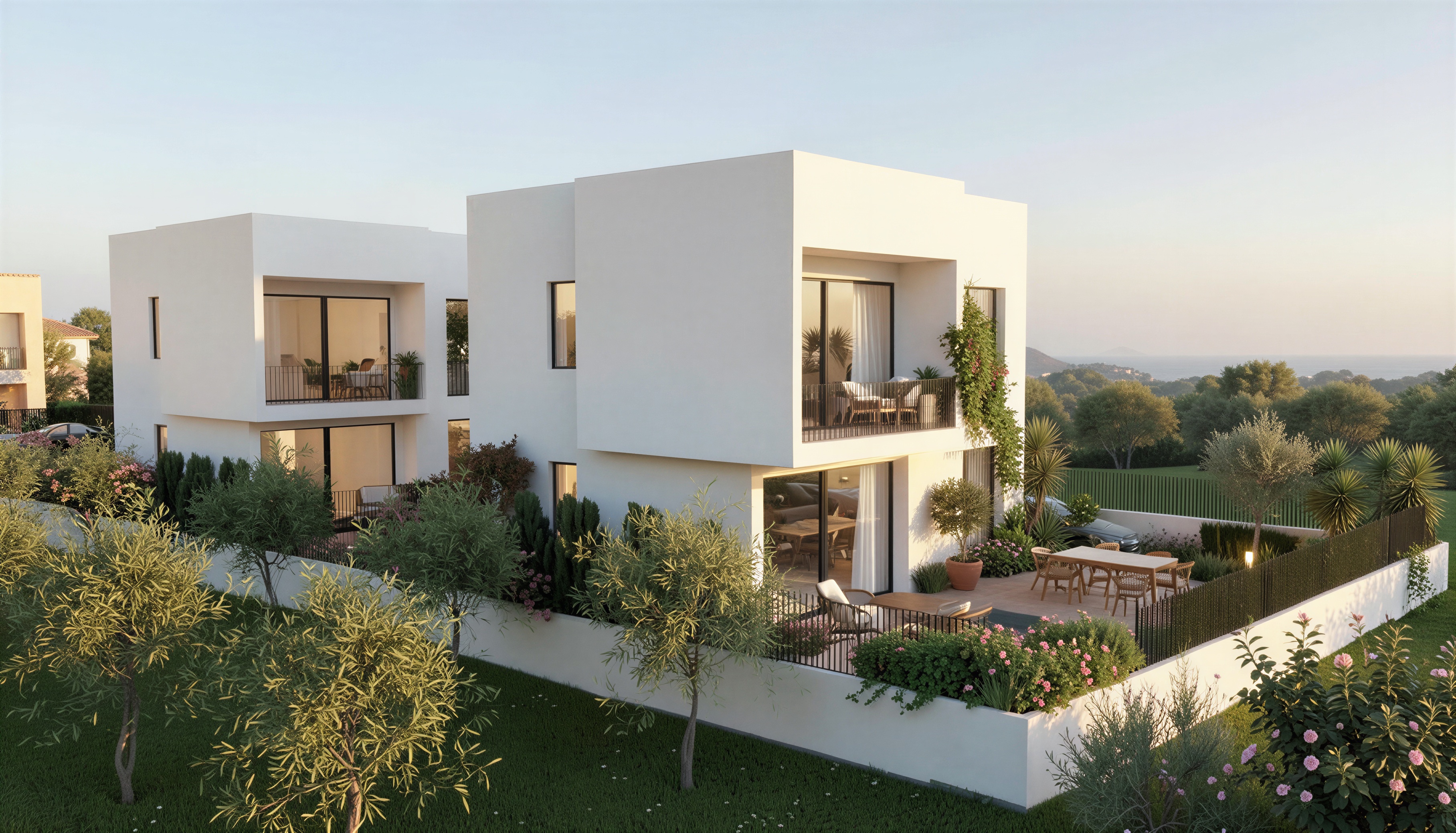 add bushes and plants mediterranien on terrace night render