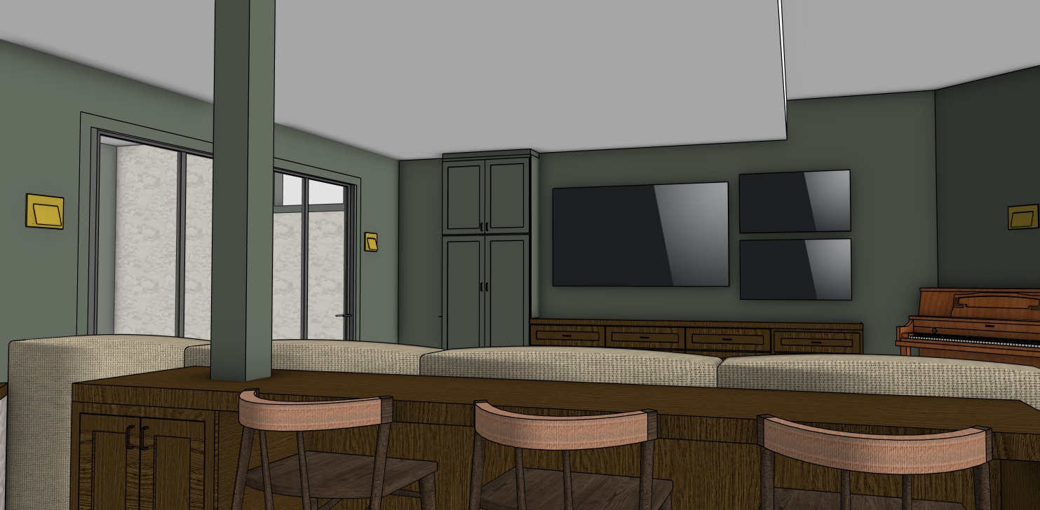 prompt create a photorealistic image of the 3d model attached do not change the colors materials scale or details keep the ceiling the exact same way