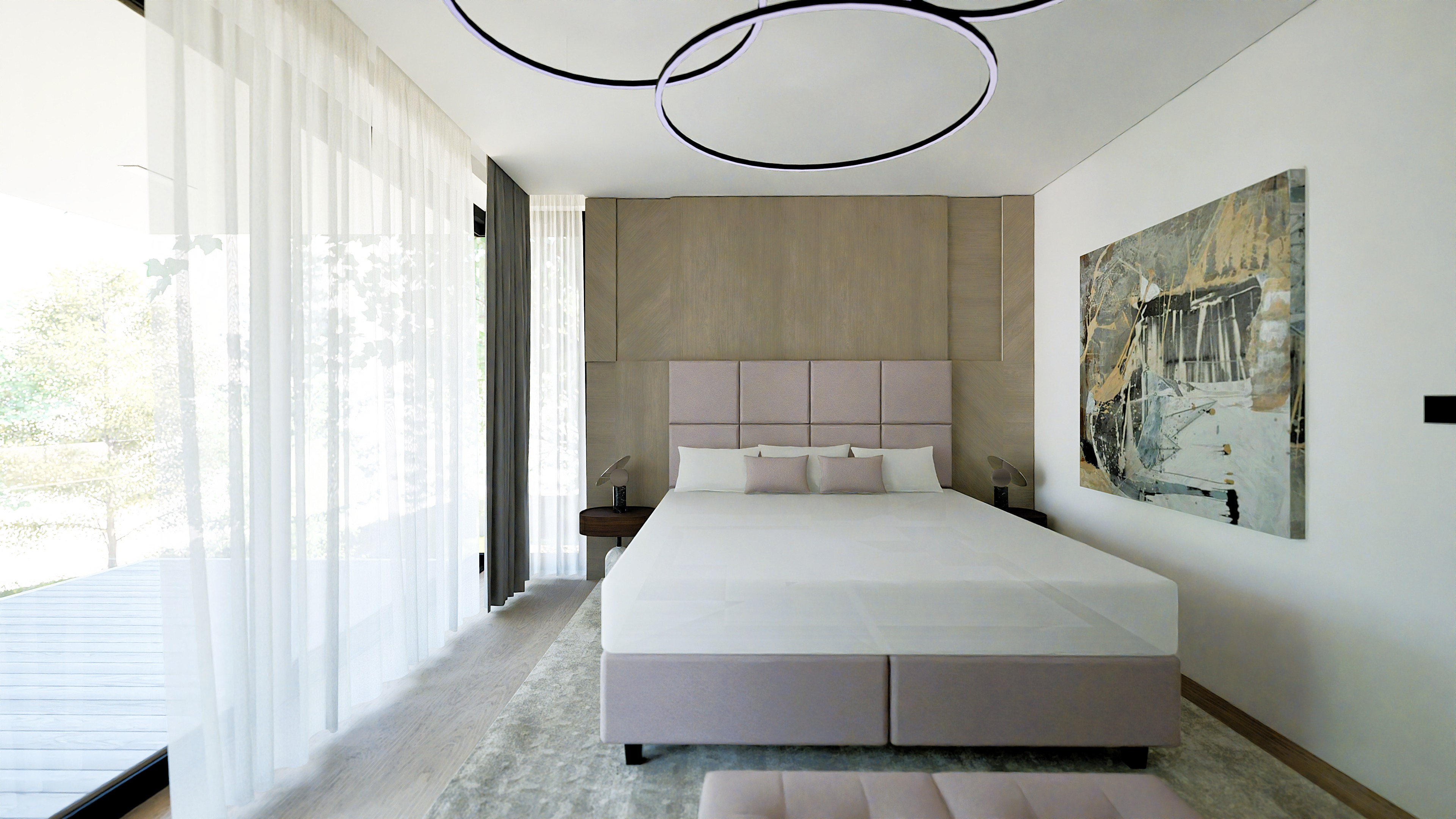 add beige satin blanket on the bed add beautifull beige blanket on the puf