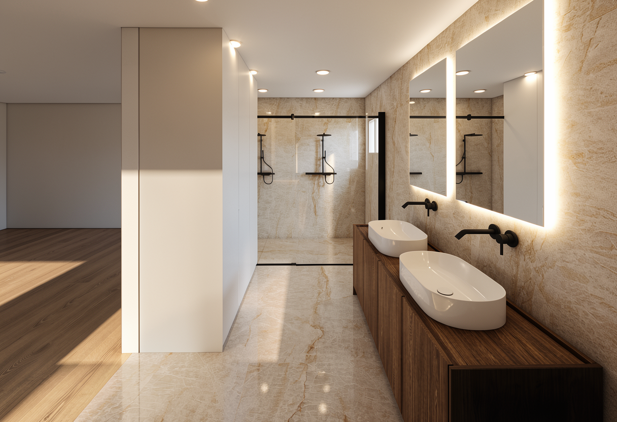 crop out the stove and gas pipes on the left side crop out the drop cloths on the fireplace in the back of the room add stained wood shelving to the open areas paint the unpainted areas white on the cabinets stain the mantle with the same color as the shelving put white trim around the fireplace insert add furniture in the room a sectional couch and two reclining chairs in neutral fabric in front of the windows with a table in between add a rug and a sofa table add minimal accessories a tv above the fireplace mantle and double rod curtains with a sheer underneath and a printed fabric on the outer layer flip the room 180 degrees and change the windows to behind the recliners show the view facing the fireplace and make the couch an l shaped sectional use the exact same furniture and the same view and put the 2 chairs in front of the windows and the sectional on the right side of the room