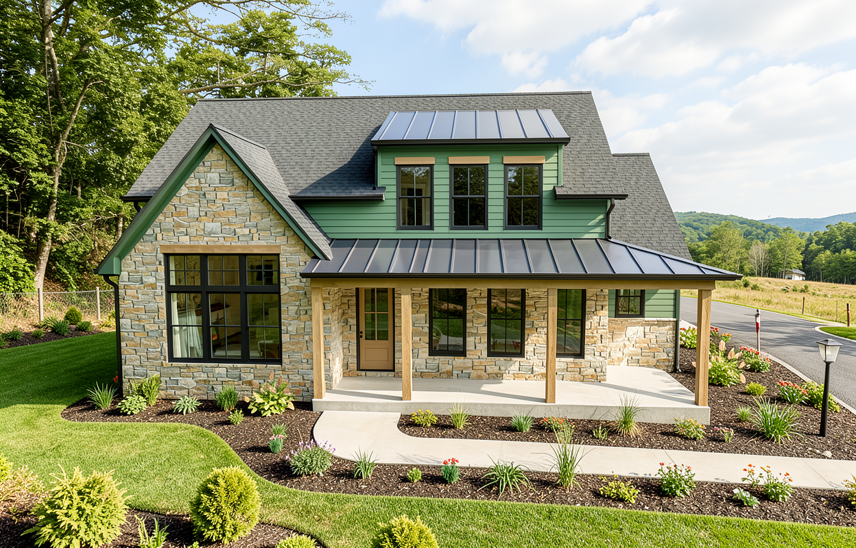 stately farmhouse in a rural setting maintain house colors clean crisp siding with mountain stone improve the landscaping driveway on the left side