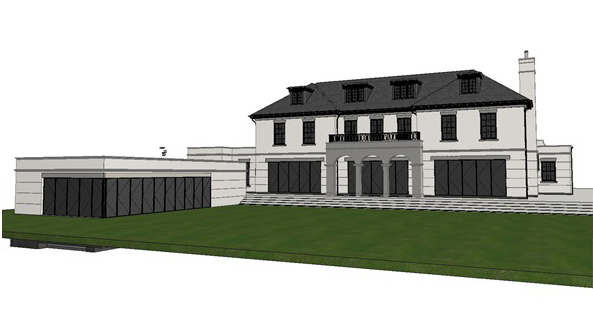 create a hyperealistc visual of this archietcts generated visual add subtle and classy planting to the rear garden all walls are an off white stucco including the banding which is a portland stone colour as are the details over and below the windows