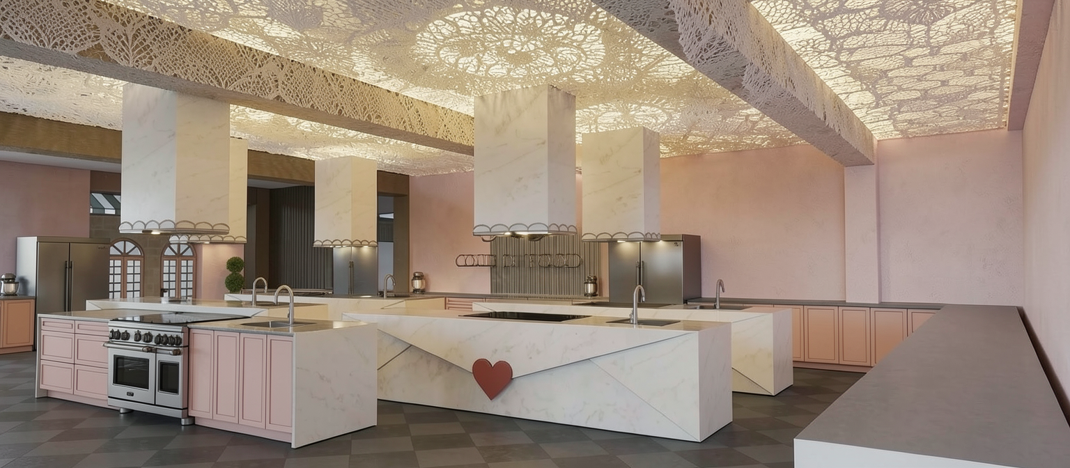 do not change any colors shapes or textures make the ceiling look like a giant piece of lace with light above it make the room bright