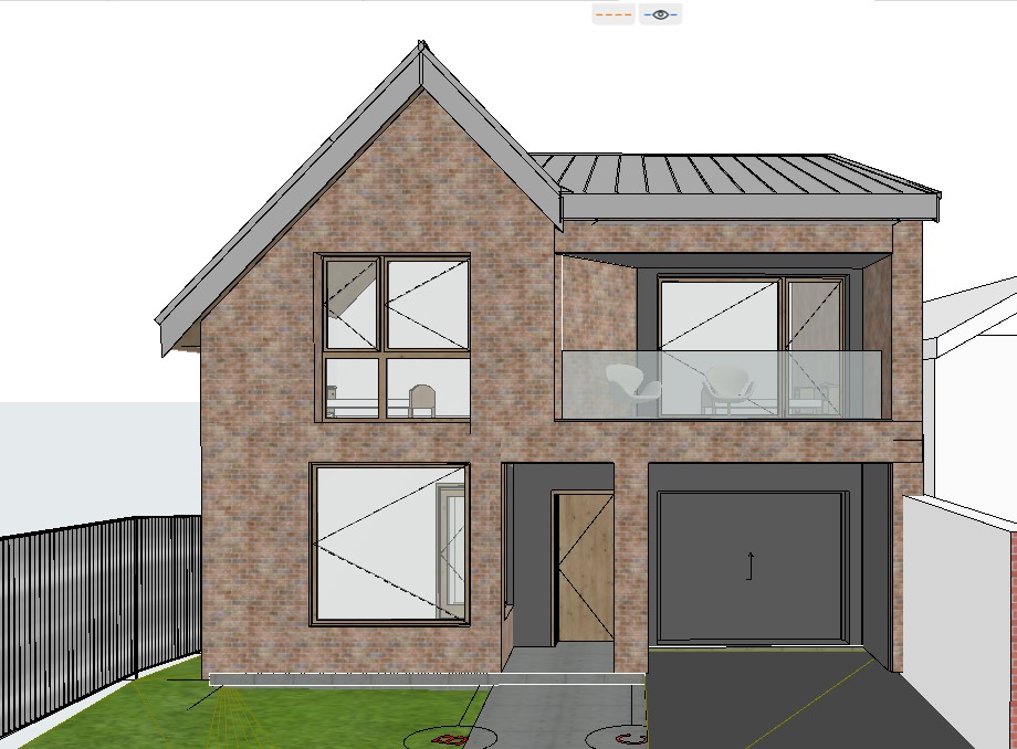 modernist exterior shot a beautifully rendered modern minimalist house set amidst a serene natural environment the house features angular wooden structures with a dark gray and black exterior large glass windows reflect the subtle hues of the surrounding landscape the wooden siding has warm earthy tones like soft browns and is combined with sleek contemporary black trimming the atmosphere is tranquil and the lighting is soft mimicking a gentle morning or late afternoon light the ground is adorned with patches of green moss and vivid yellow wildflowers adding a burst of color and life the surrounding trees are leafless drawn with delicate thin black lines indicating the late autumn season shadows of the trees create an intricate pattern on the house and the ground in varying shades of gray and brown the entire setting feels both modern and natural embracing simplicity and elegance architecture white color to walls and the ride side de garaj door is not transparent