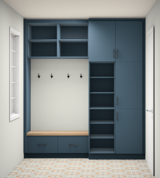 recessed lights in the ceiling add items to the mudroom bench add items to mudroom bench add shoes to shelves hang coat on hangers