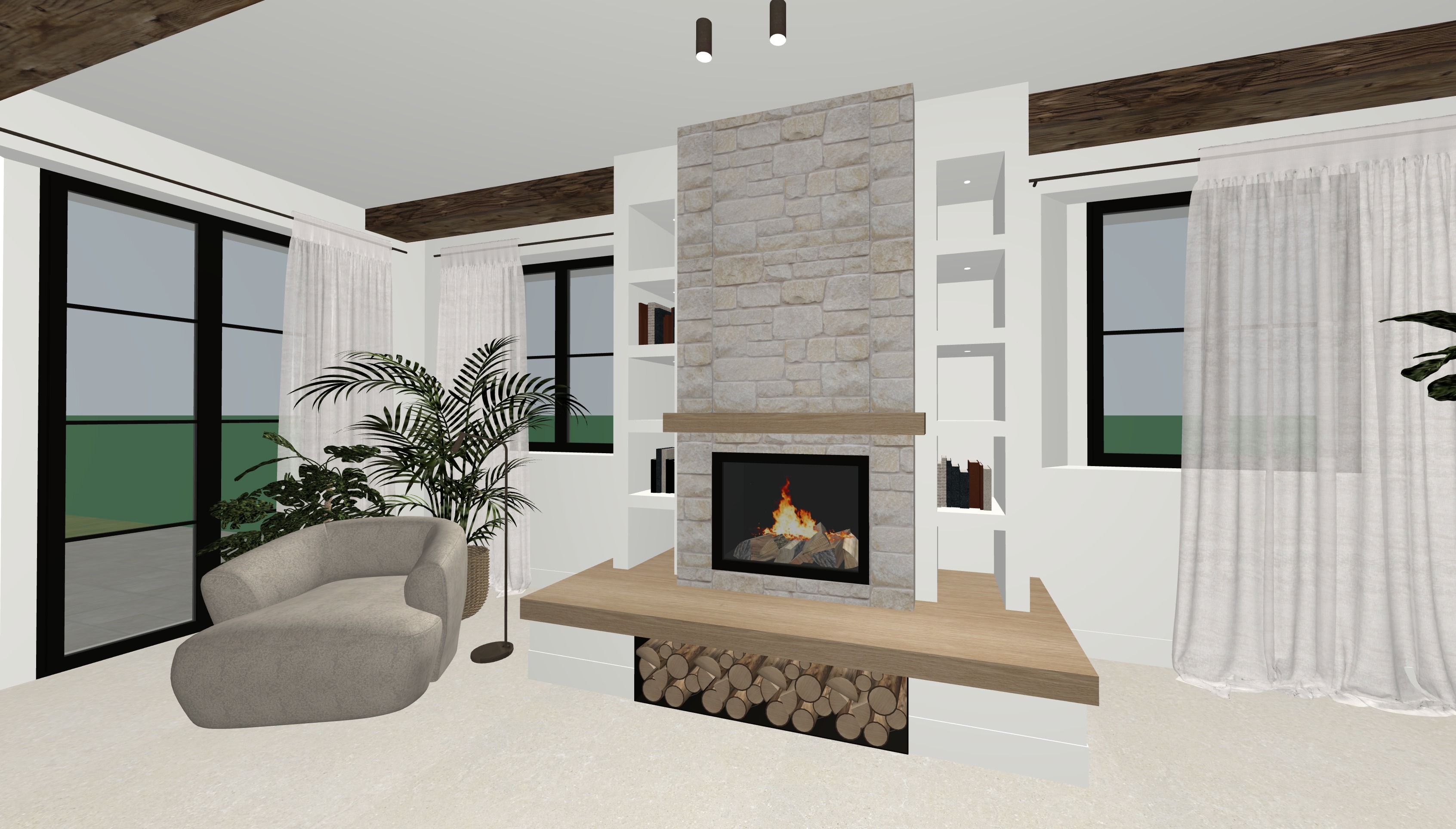 dentro ad ogni nicchia a fianco del caminetto c un punto luce