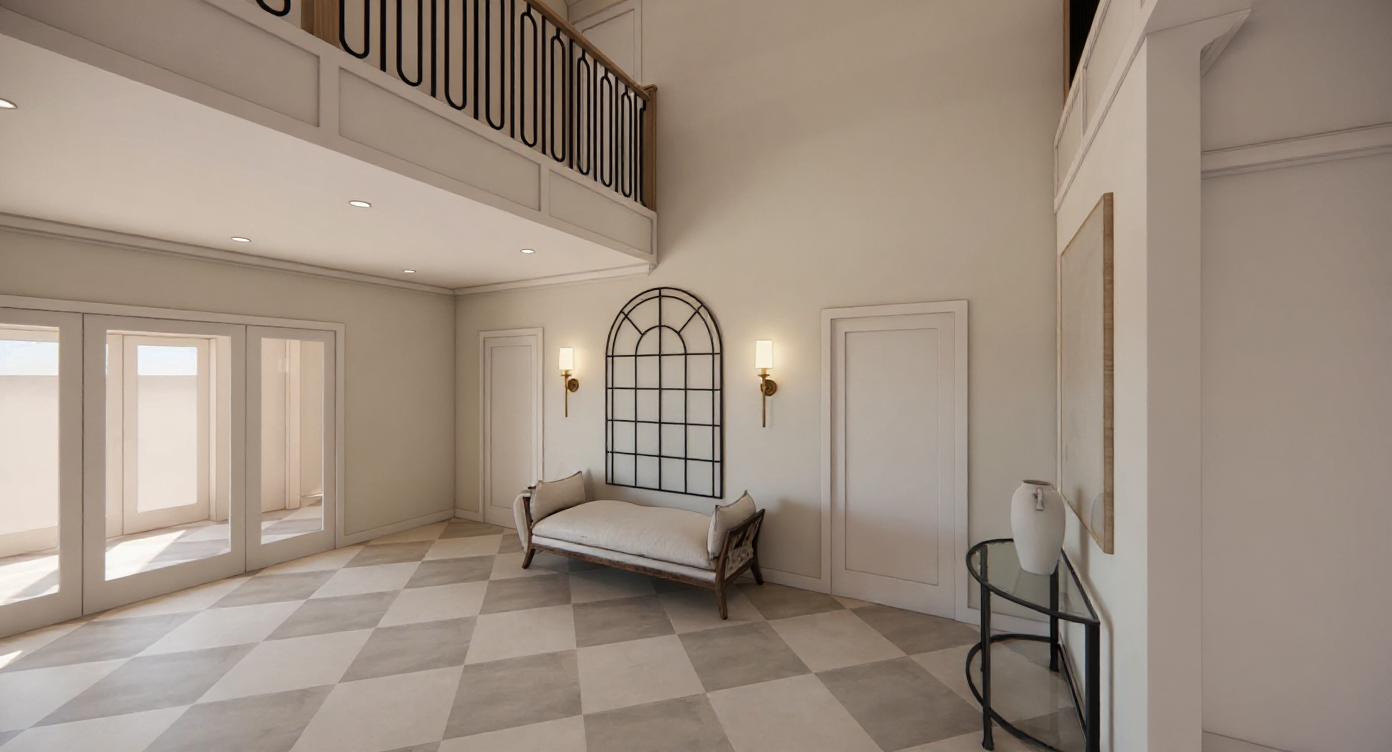 you could transform this bathroom into a modern style by replacing the floor with a dove grey stone one installing half wall cladding that matches the floor replacing the bathtub in the photo with a modern walk in shower with black finishes and placing green marble slabs behind the shower without changing the arrangement of the bidet toilet and cabinet