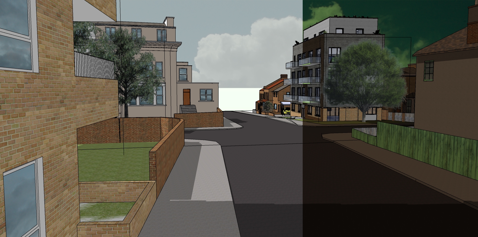 south london residential street scene with a few cars people and blue sky