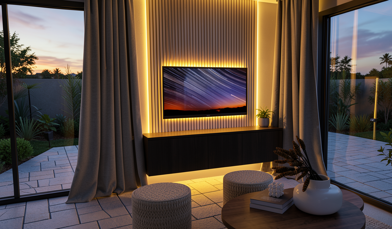 modern 4 story white residential building with straight slabs and columns continuous external ribbon facade made of thin vertical metal fins positioned in front of slab edges with a visible shadow gap forming a smooth aligned wave across all floors extending above and below slab edges thin elegant proportions lightweight floating appearance photorealistic