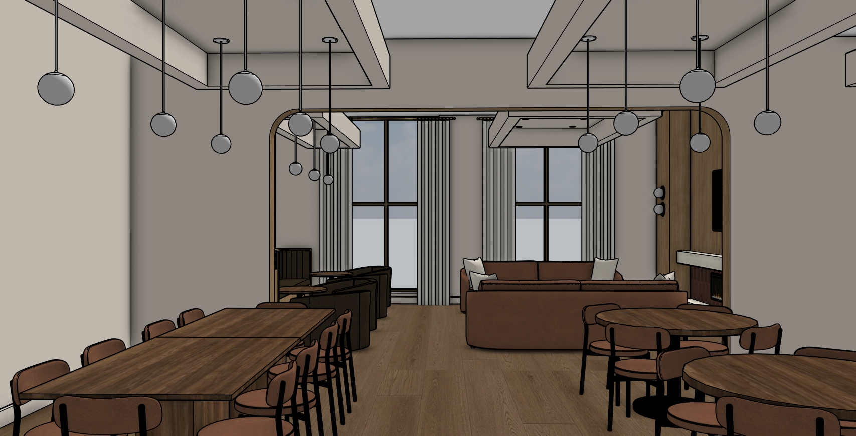 interior shot do not change visual image enhance image to be photorealistic do not change anything do not change materials colors or textures keep glass as solid white on globe pendant lights