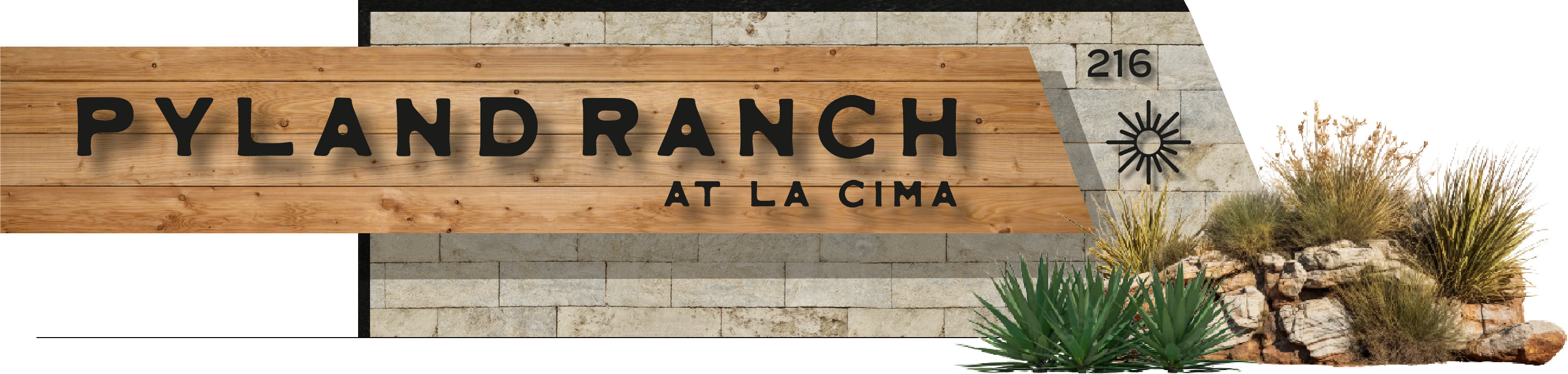 large monument sign at the entrance to an apartment complex locaated in a layered flower beds low maintenance shrubs native texas plants
