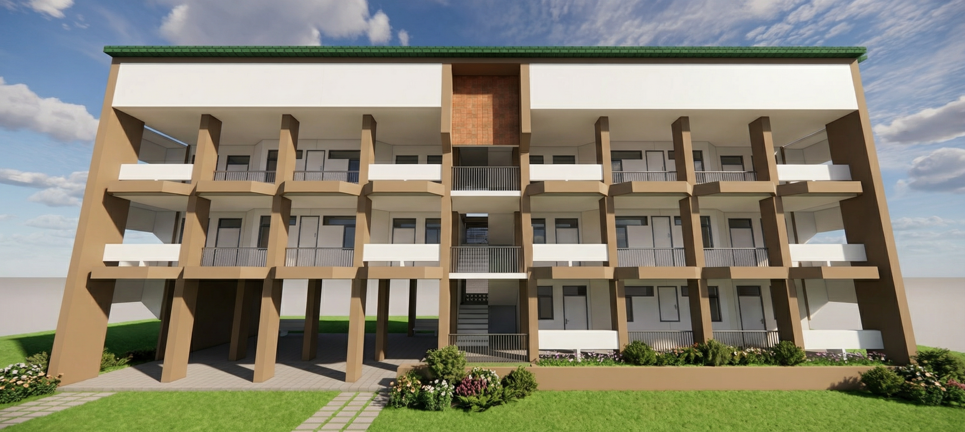modern architectural design day lighting stainless steel railing color tone and concrete materials minimalist design high detail photorealistic