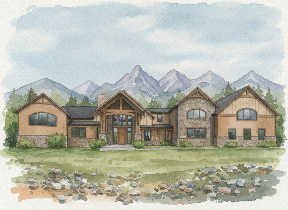 mid century modern house overlooking the ocean in pacific palisades california with black trims and cedar wood accents and travertine stone at the base level sunny blue clear sky with olive trees and native bushes and lush green grass hillside with neighboring houses