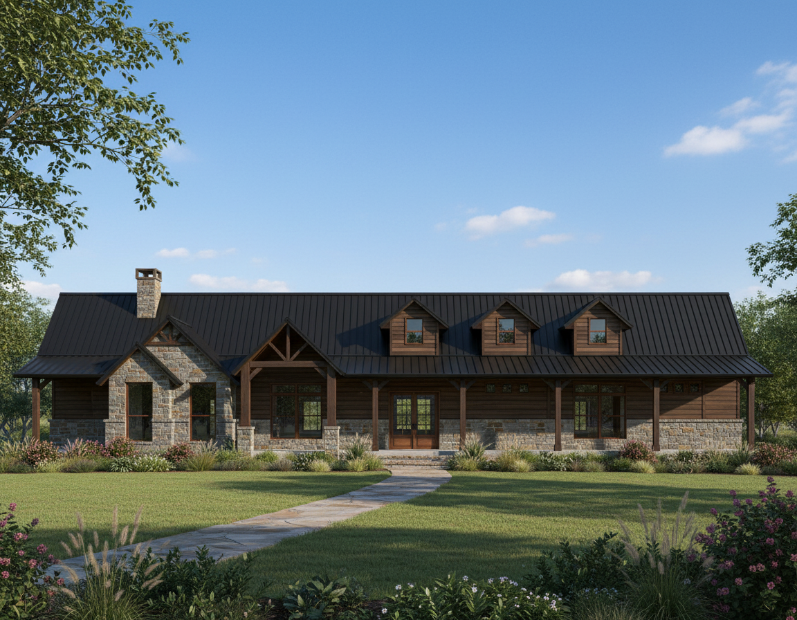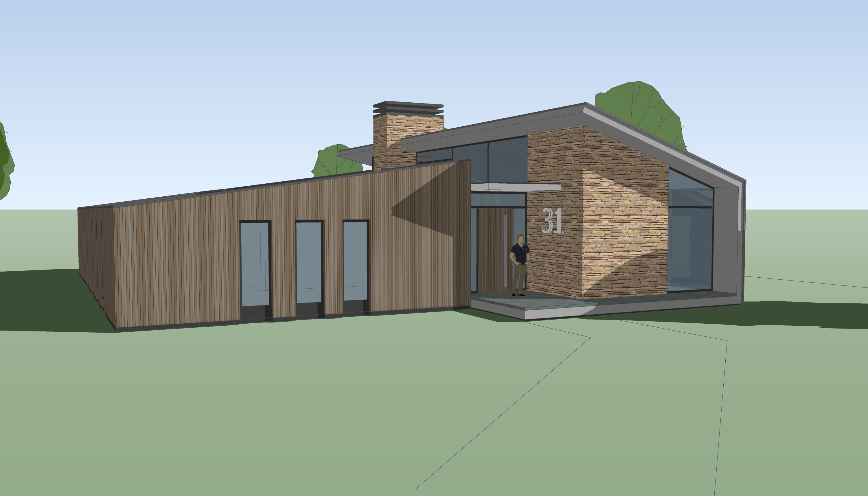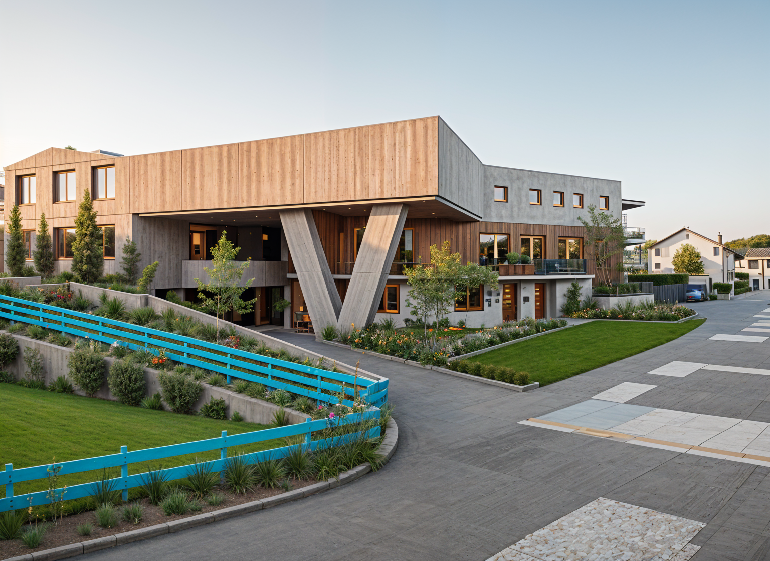 the house in the scene is surrounded by a lush green garden with lots of flowers and bushes there are lots of people in the scene the weather is sunny with a few clouds in the sky the time of day is the golden hour