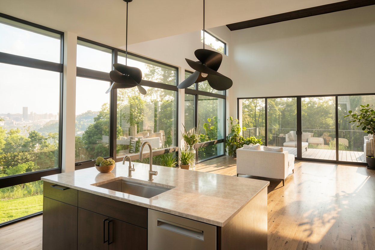 move the ceiling height out of frame and remove the window on the left side add a sliding glass door on the right end of the room