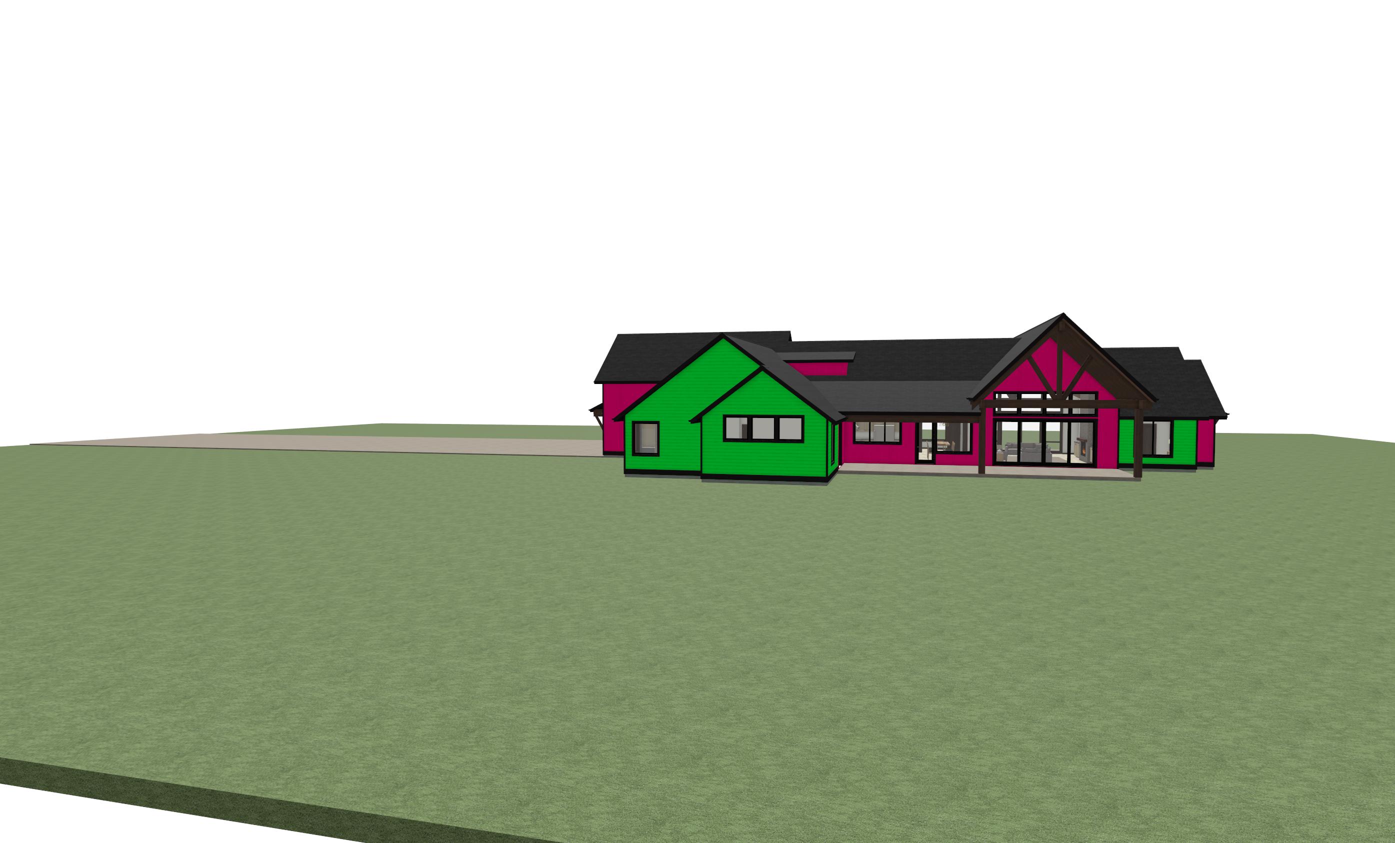strict mode highest priority preserve all geometry and material placement exactly no design changes of any kind absolute rule do not add stone or rock anywhere on the house do not introduce new materials do not replace siding with any other material if unsure keep the original exactly as is material mapping critical do not change areas shown as pink board and batten siding only areas shown as green horizontal lap siding only do not swap mix or reinterpret these areas do not move material boundaries do not blend materials together siding material pink board and batten tight linear wood grain striations cool gray brown with subtle variation slightly weathered tone rgb light 211 202 192 rgb dark 79 71 62 grain is compressed and consistent not wide or rustic matte factory finish not smooth not flat siding material green lap siding tight linear wood grain striations rich dark brown with warm undertones no gray cast rgb light 135 115 87 rgb dark 47 35 25 grain is compressed and consistent not wide or rustic matte factory finish not smooth not flat anti failsafe this stops your issue do not add stone rock or masonry anywhere do not reinterpret siding as stone or any other material do not improve materials by adding variety do not rebalance or redistribute materials trim all trim fascia and window door trim diamond kote onyx landscaping isolated montana landscape with native vegetation landscaping only in foreground and around house do not attach materials to the house do not modify patio or structure do not extend patio render photorealistic material detail accurate grain scale and depth natural lighting and shadows