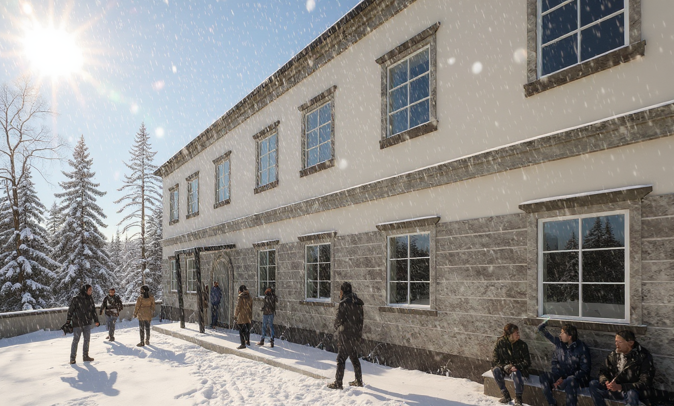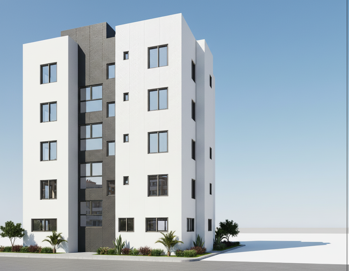 scene photorealistic render of an office building in nicosia cyprus same camera same framing same geometry architecture must remain 100 unchanged architecture do not modify building shape facade composition window grid proportions floor heights no redesign materials keep all existing materials and colors exactly the same improve material realism only texture quality roughness reflections no material replacement no new materials glass reflections keep glass material as glass add realistic urban reflections nicosia city buildings trees streets correct fresnel reflection stronger at angles softer front view no mirror effect environment location important add a realistic urban environment through reflections lighting and background context surrounding low rise city blocks mediterranean trees streets realistic depth and scale environment must support realism and not dominate the building lighting natural cyprus daylight clean sun soft realistic shadows balanced exposure sky clear cloudless mediterranean sky natural blue gradient style ultra realistic architectural visualization professional clean real world look no stylization no ai art appearance restrictions critical do not change architecture do not change colors do not add or remove architectural elements do not stylize do not simplify materials