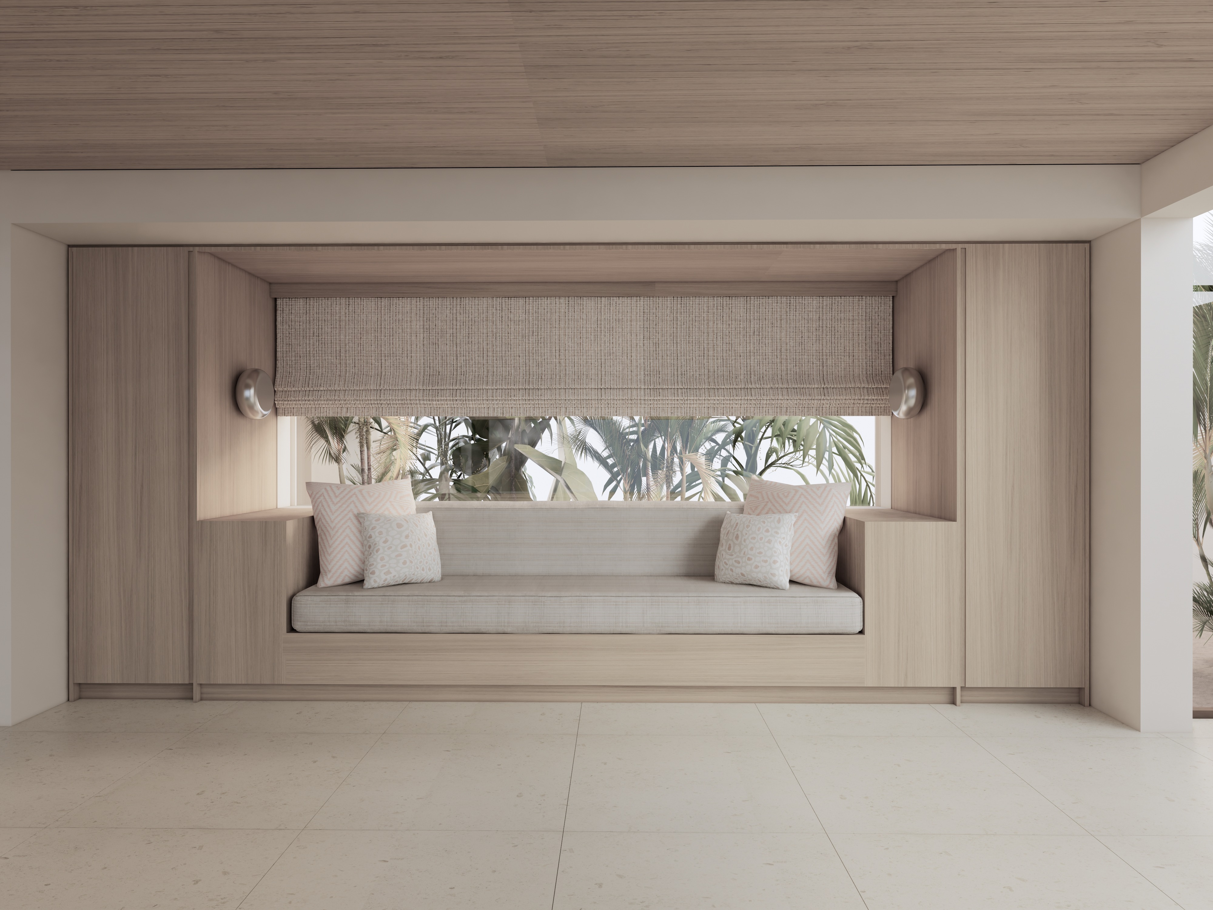enhance this seating area to feature rich velvet upholstery replace existing fabric with deep luxurious velvet texture add soft light reflections subtle fabric sheen and realistic folds make the space feel elegant warm and high end