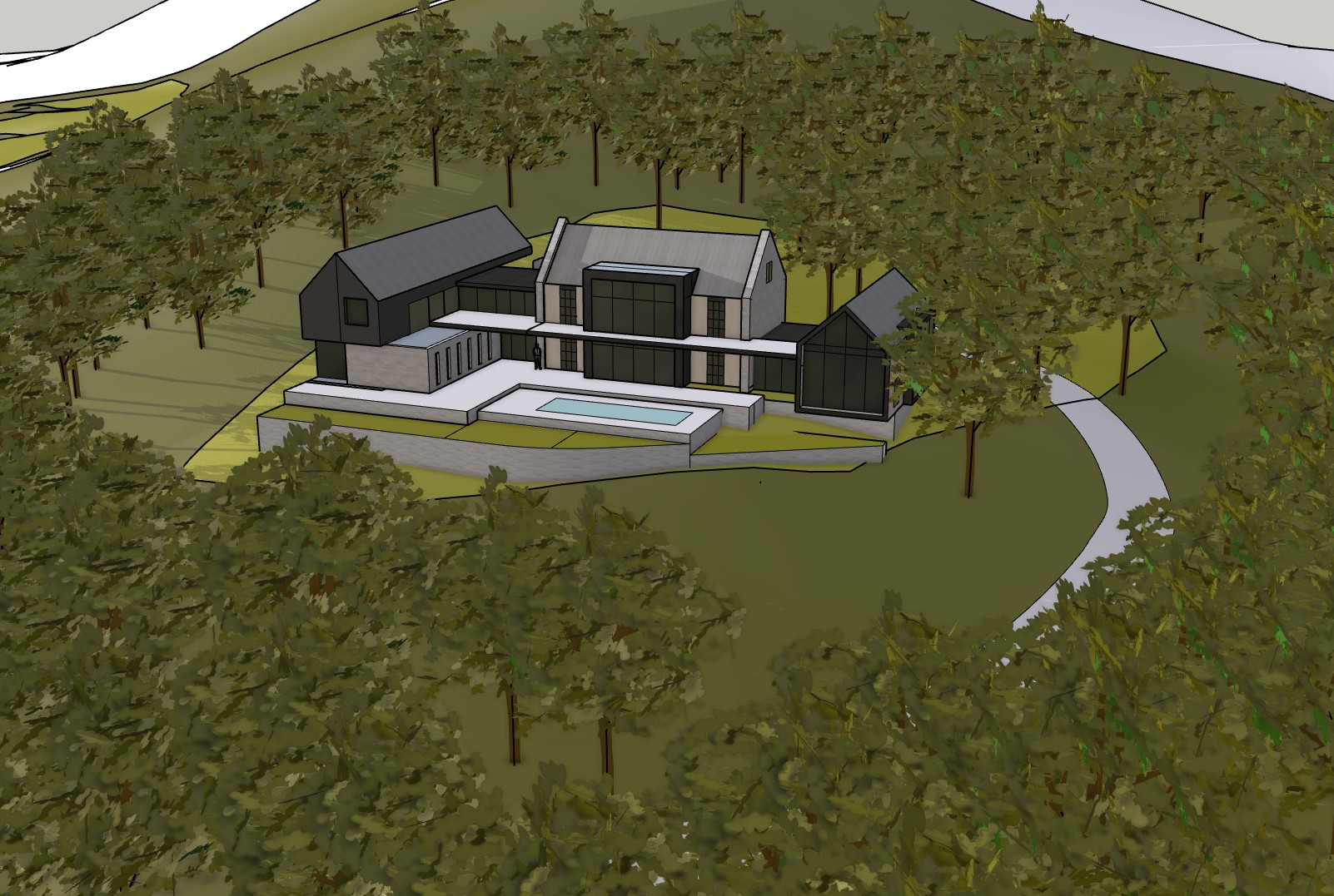 tennessee warm modern home keep materials stone accent forest realistic natural lighting