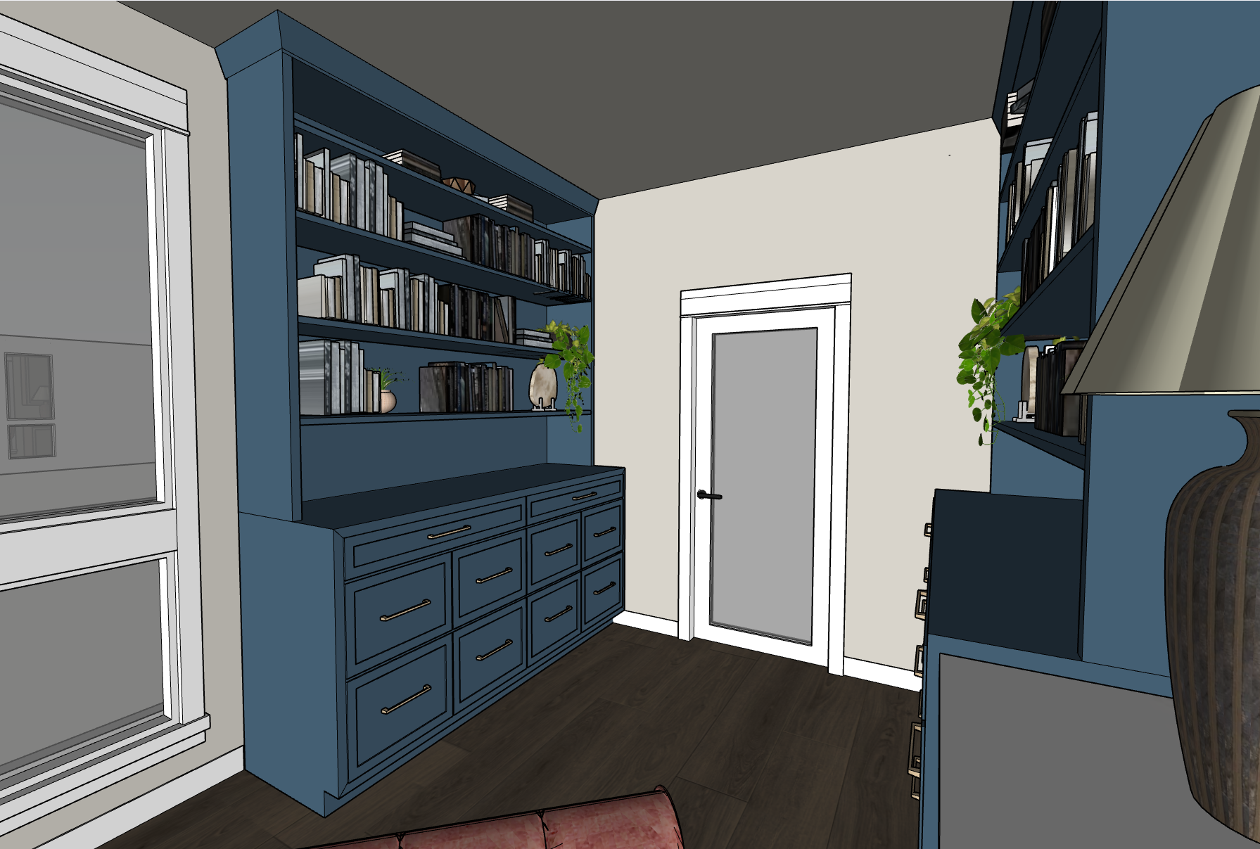 add can lighting add garden scene outside window door to be frosted opaque