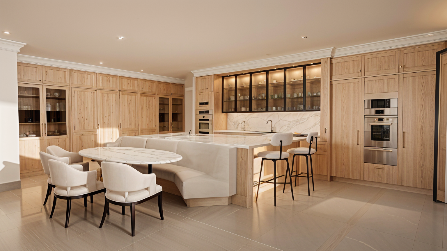modernist exterior shot modern house with clear glass windows and concrete walls with wooden eaves and main door beige patterned walls white walls grass front lawn which is green on the image architecture
