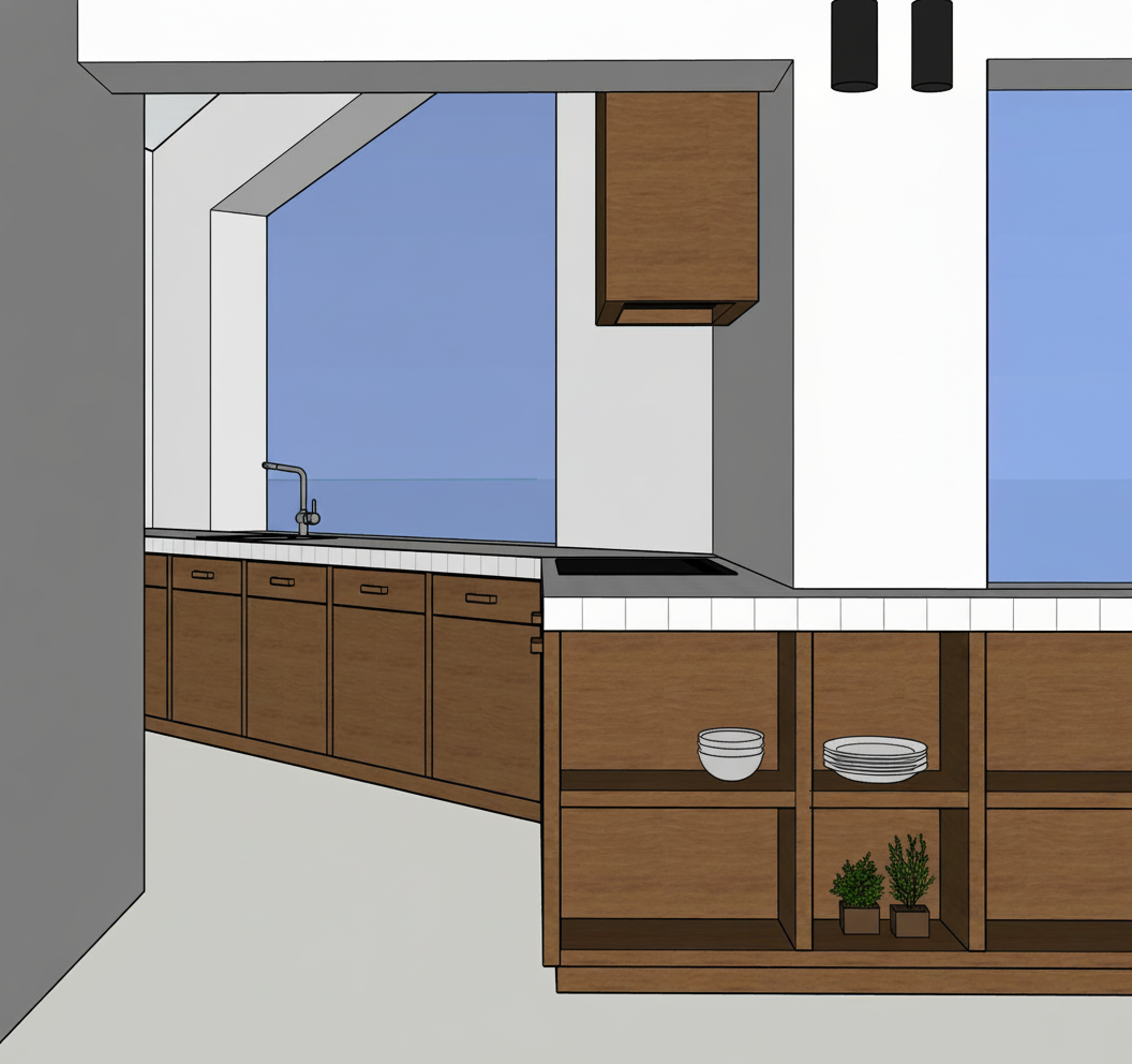 mediterranean revival exterior shot render a beautifully restored victorian style house with freshly painted olive green siding and pristine white trim the porch features rich oak wood accents and vibrant flowers in bloom the surrounding atmosphere is bright and inviting with a clear blue sky and lush evenly cut green grass a classic red stop sign and charming well maintained neighboring houses in pastel colors add to the picturesque setting architecture