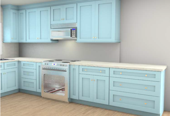 classic white matte 2 x 8 install in a horizontal stack pattern on backsplash continue to end of countertop keep blue cabinet color