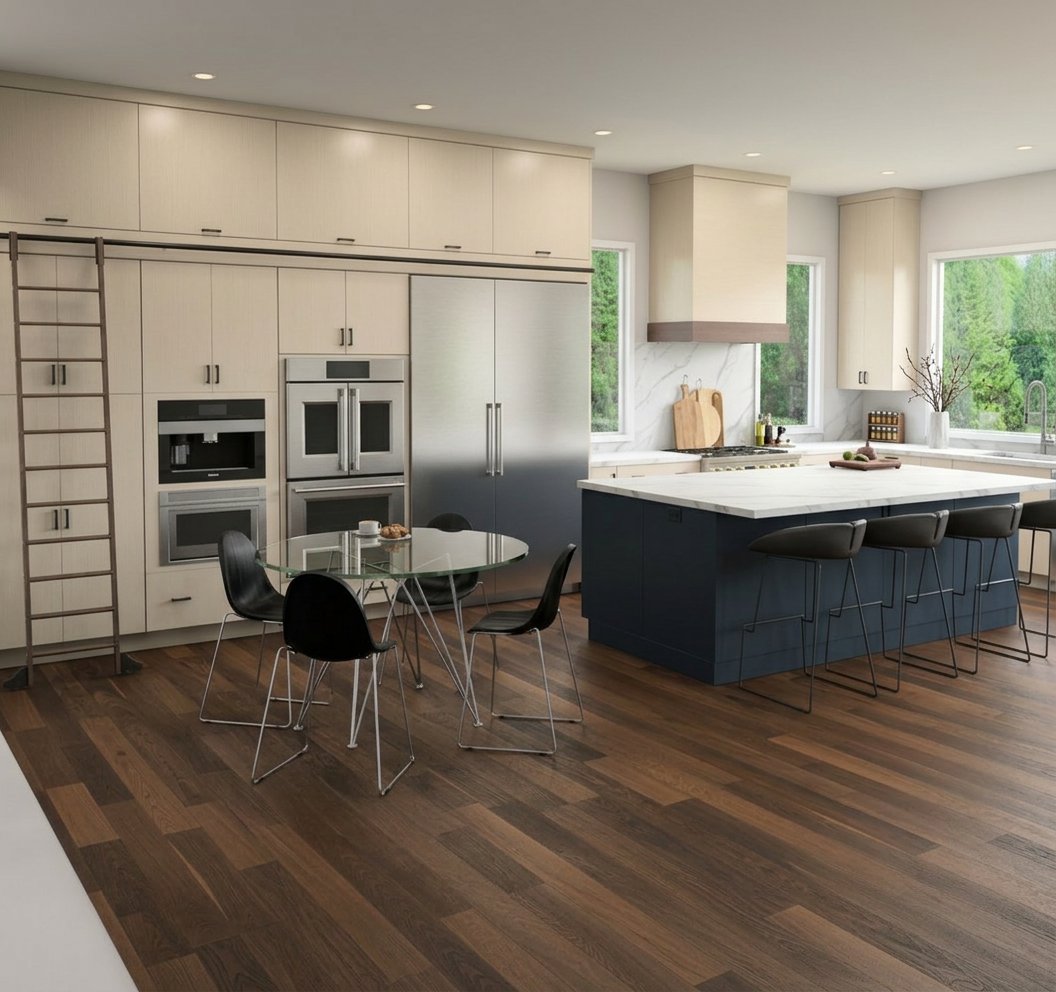 please make this look realistic with lighting and shadows but keep colors as close to my original photo as possible and cover the white bottom left corner with flooring material to match existing flooring